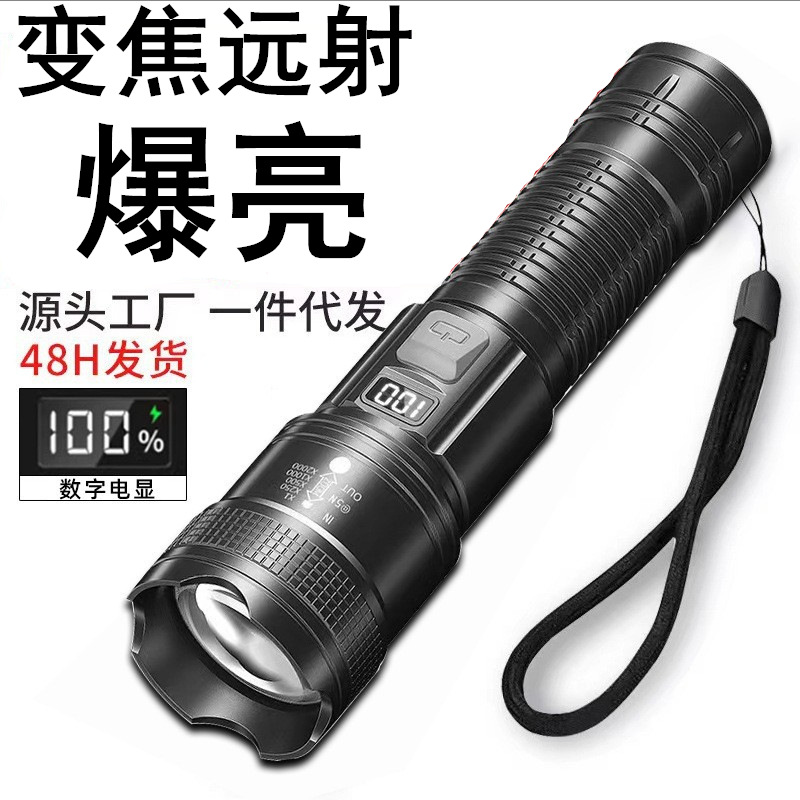 国境を越えた超高輝度長距離長寿命パトロール強力な光懐中電灯伸縮ズーム充電マルチパワー屋外懐中電灯