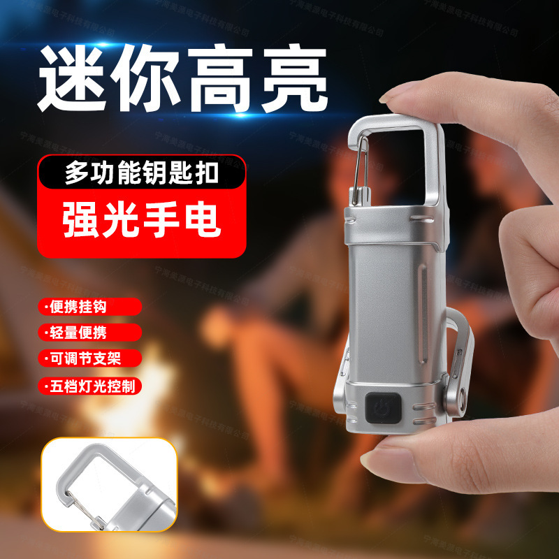 跨境户外便携随身灯带挂钩露营应急照明手电筒多功能迷你钥匙扣灯