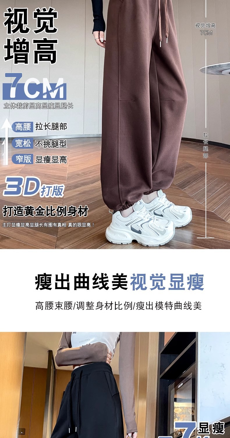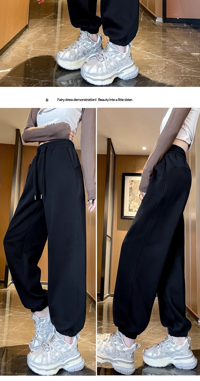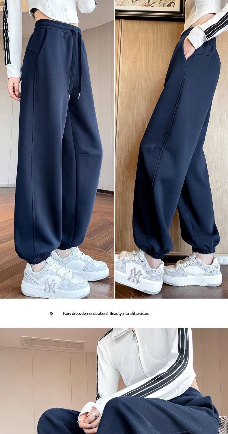 足の束の運動のズボンの女性の2025新型の小さい背の高い腰の垂れ下がった感の春秋の薄いタイプの衛のズボンのカジュアルな顕のやせている灯籠のズボン