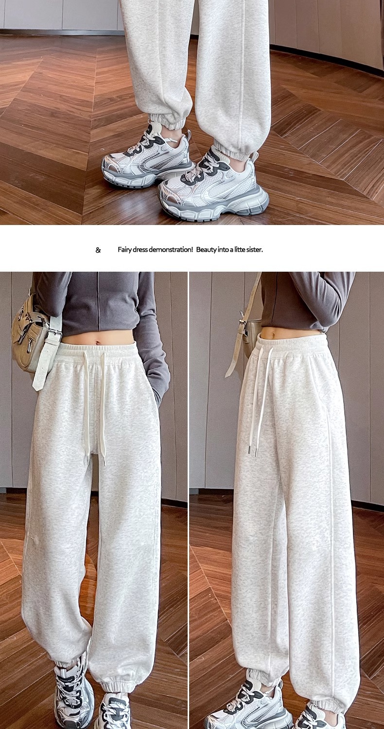 黒のスウェットパンツの女性の春と秋のスタイルプラスベルベット 2025 新しいルーズレッグ大きいサイズ脂肪 mm 小さなカジュアルスウェットパンツ