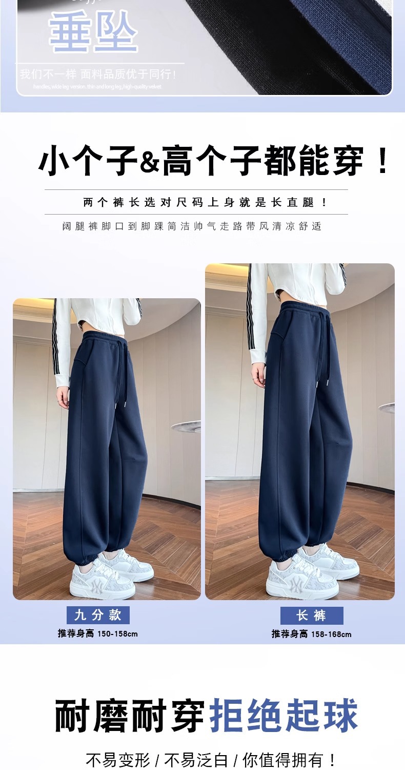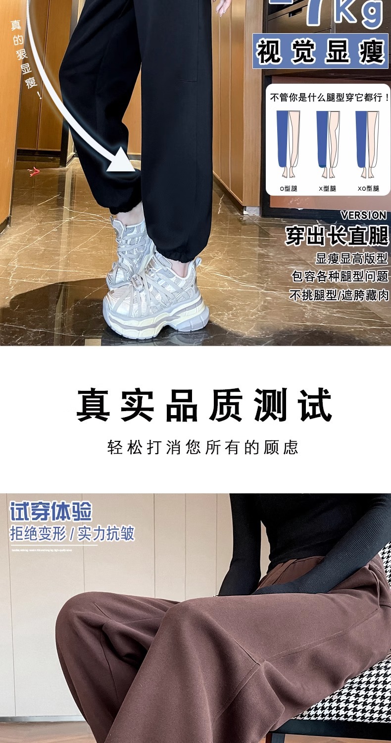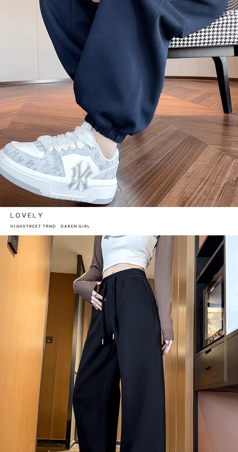 女性用ワイドレッグパンツ 2025 春と秋の新作スポーツストレートカジュアルパンツ小柄な人向け、スリムでドレープのあるバナナパンツ