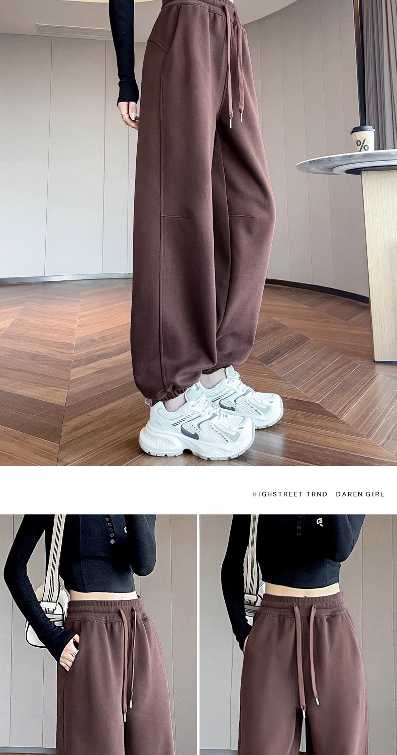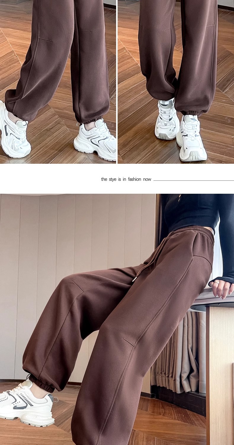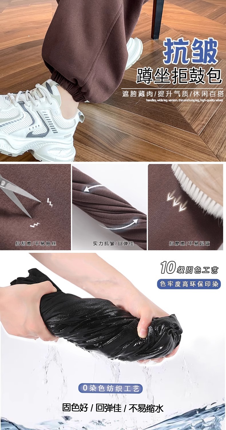 烏梅の紫色のスポーツのズボンの女性の春秋のベルベットの2025の新型のまっすぐな筒の狭い版の衛のズボンの高腰のバナナの広腿のズボン