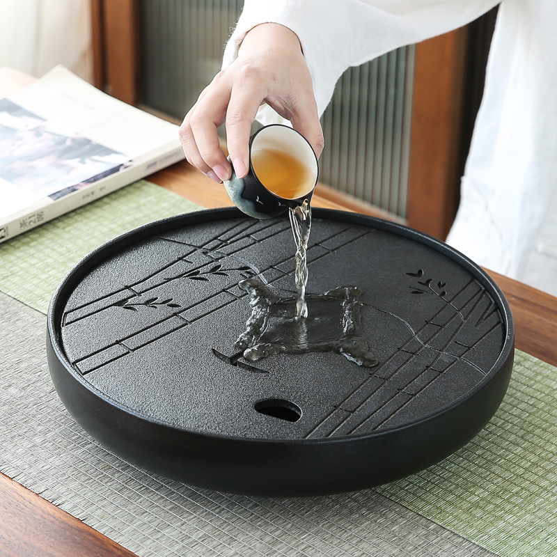 茶盤 大型 乾式茶台 家庭用 陶器製 水貯蔵皿 丸型 オフィス用 茶托 茶海 茶器 水貯蔵式