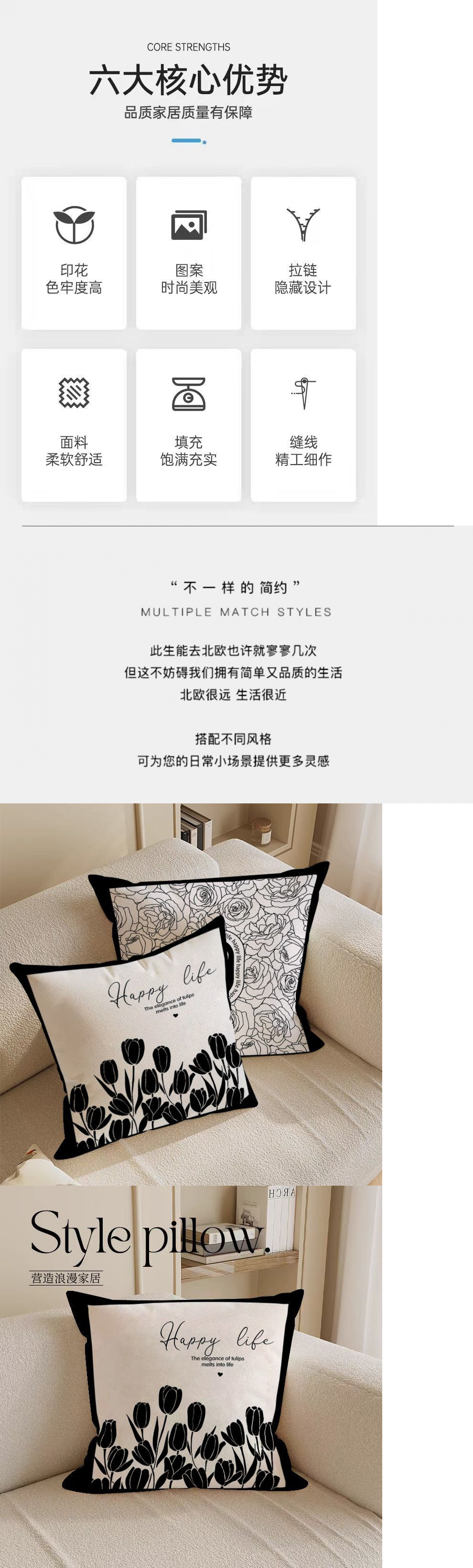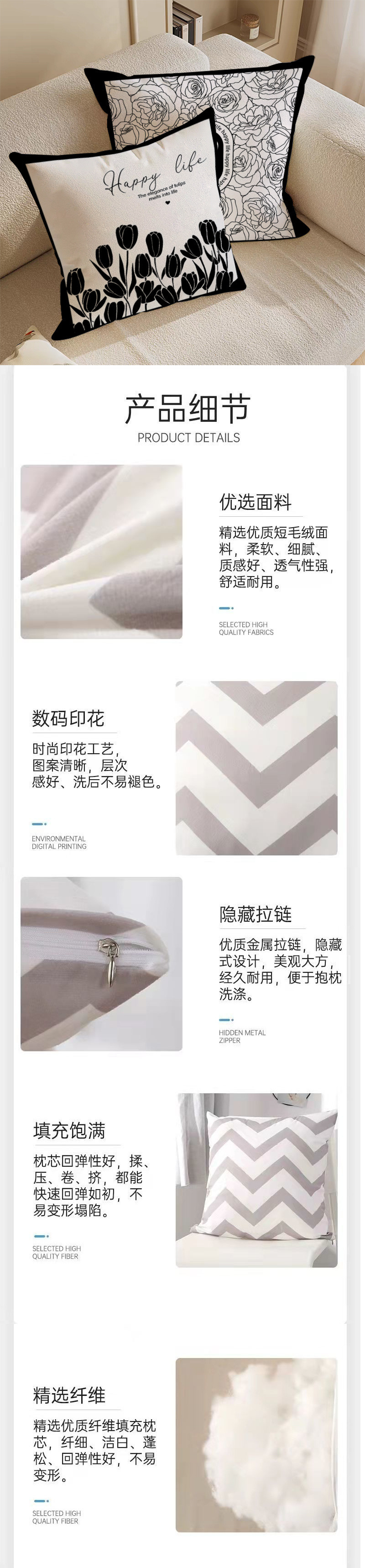 北欧の軽い贅沢な高級感抱き枕フランス式レトロ抱き枕白黒抽象芸術砂