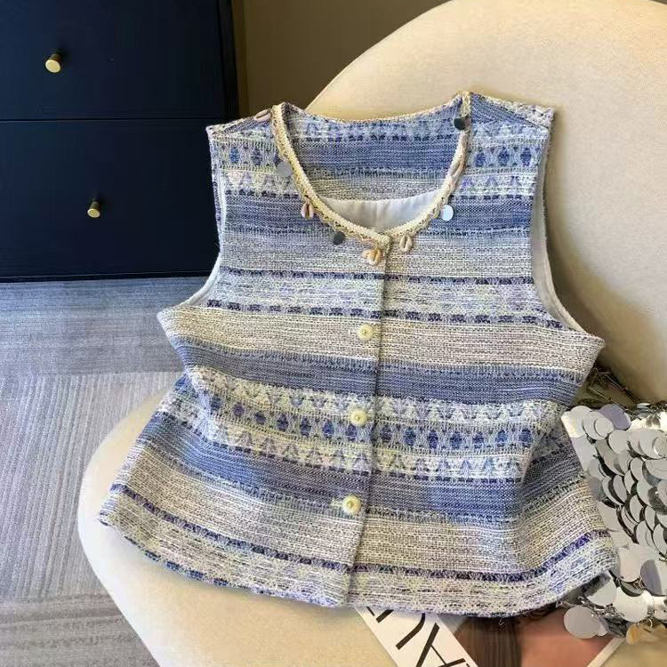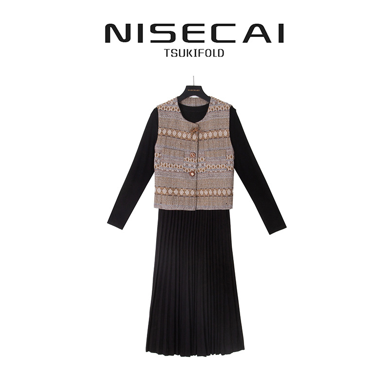 波西米亚风地中海拼接马甲时尚百搭小香风裙子两件套(13580338)