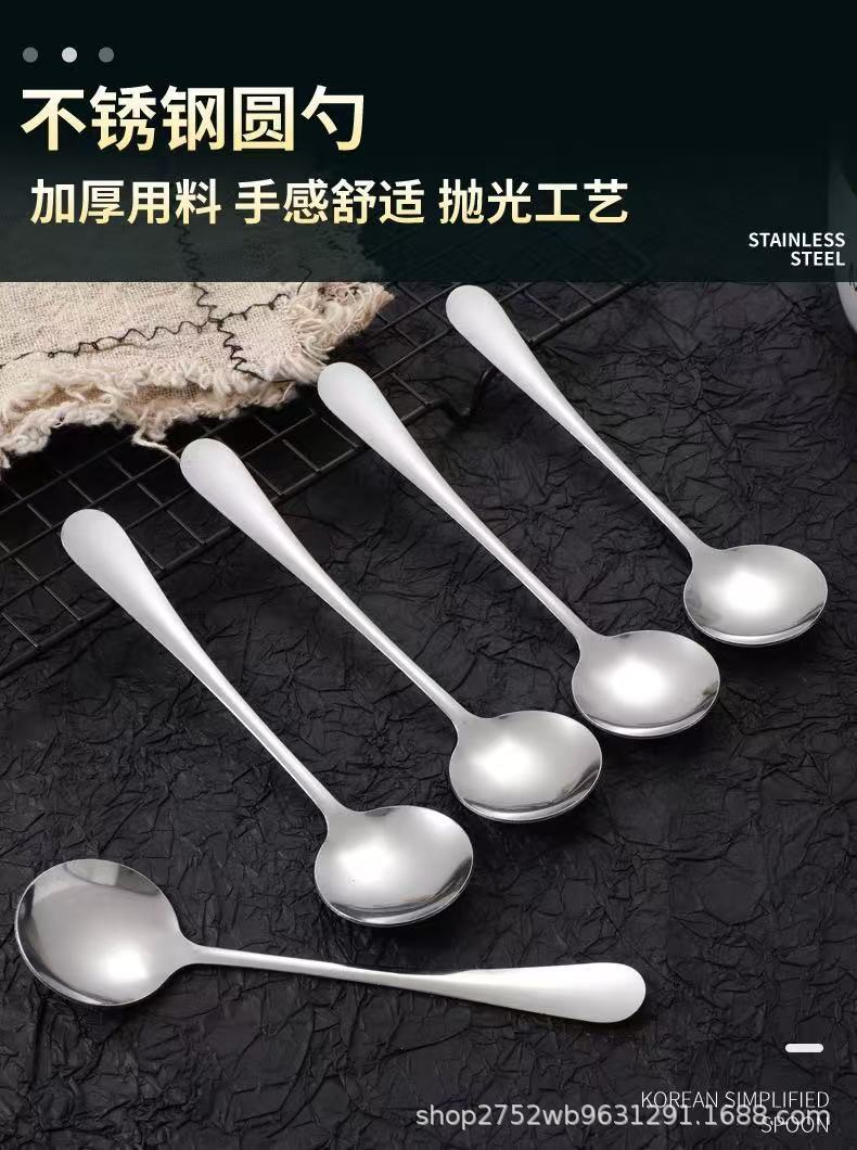 厚いステンレススプーン果物スプーンスイカスプーン成人児童スプーン食事スプーン中の長い柄家庭用スプーン