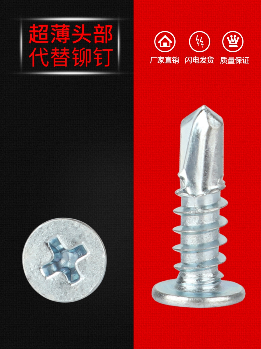 フラットトップヘッドドリルテールネジ、軽量スチールキール天井薄片ヘッドフラットヘッドセルフタッピングセルフドリルダブテールネジM4.8*16