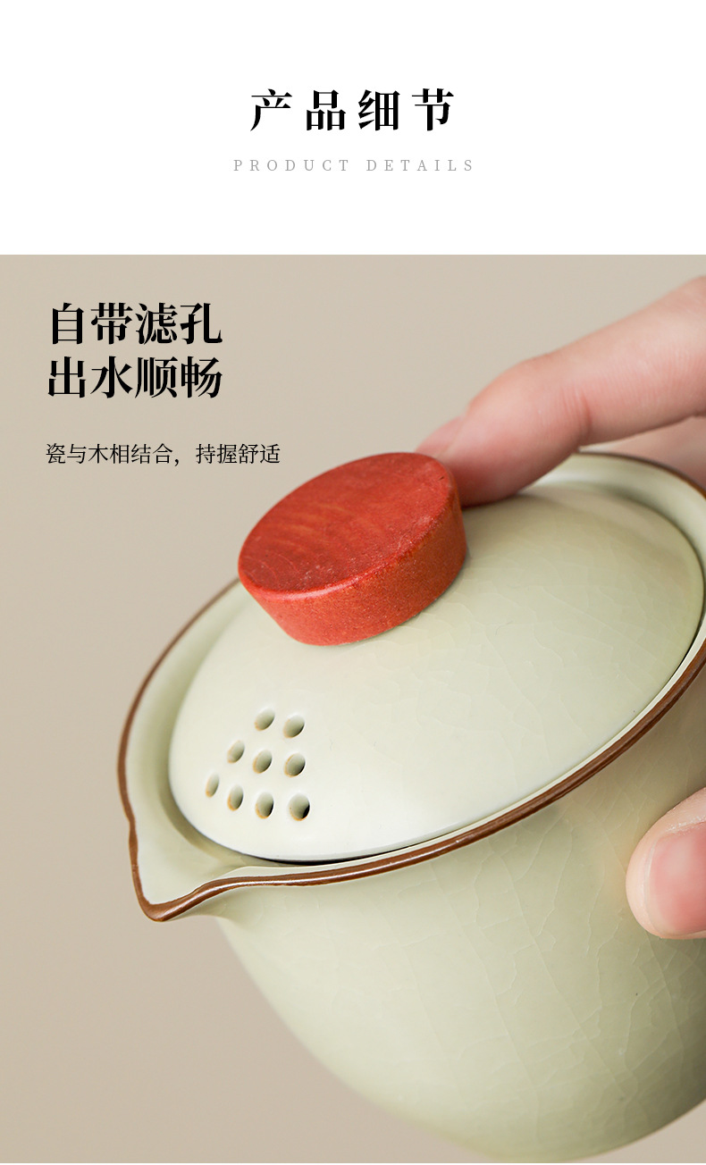 哥窑旅行功夫茶具套装随身泡茶壶陶瓷户外旅游便携式盖碗三杯礼品
