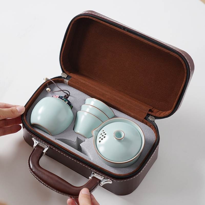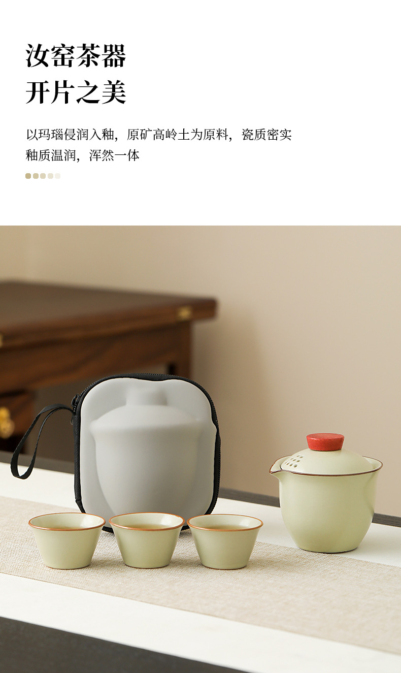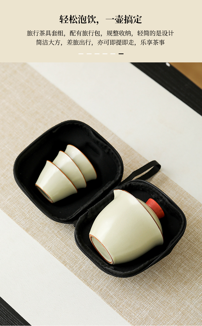 汝窑旅行茶具一壶三杯便捷式户外陶瓷快客杯套装商务活动伴手礼品
