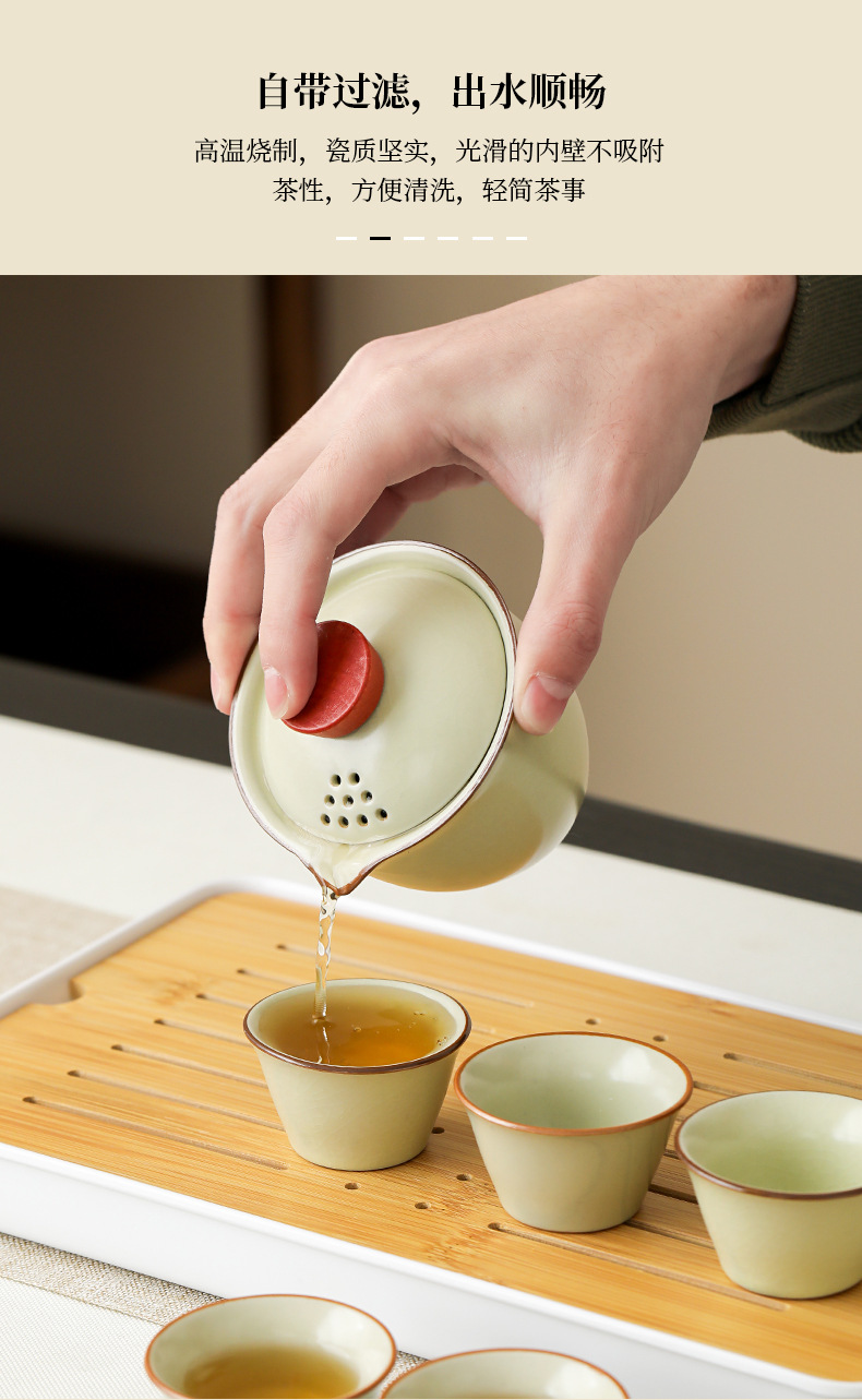 汝窯旅行茶器セット携帯でシンプルな陶磁器でお茶を飲みます。