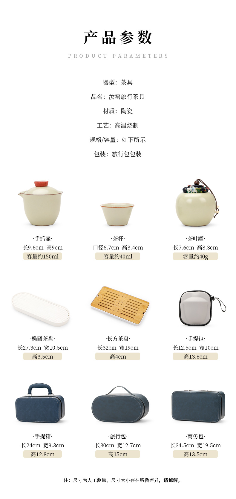 汝窯旅行茶器セット中国式携帯屋外工夫茶器陶磁器乾燥茶器携帯旅行バッグ
