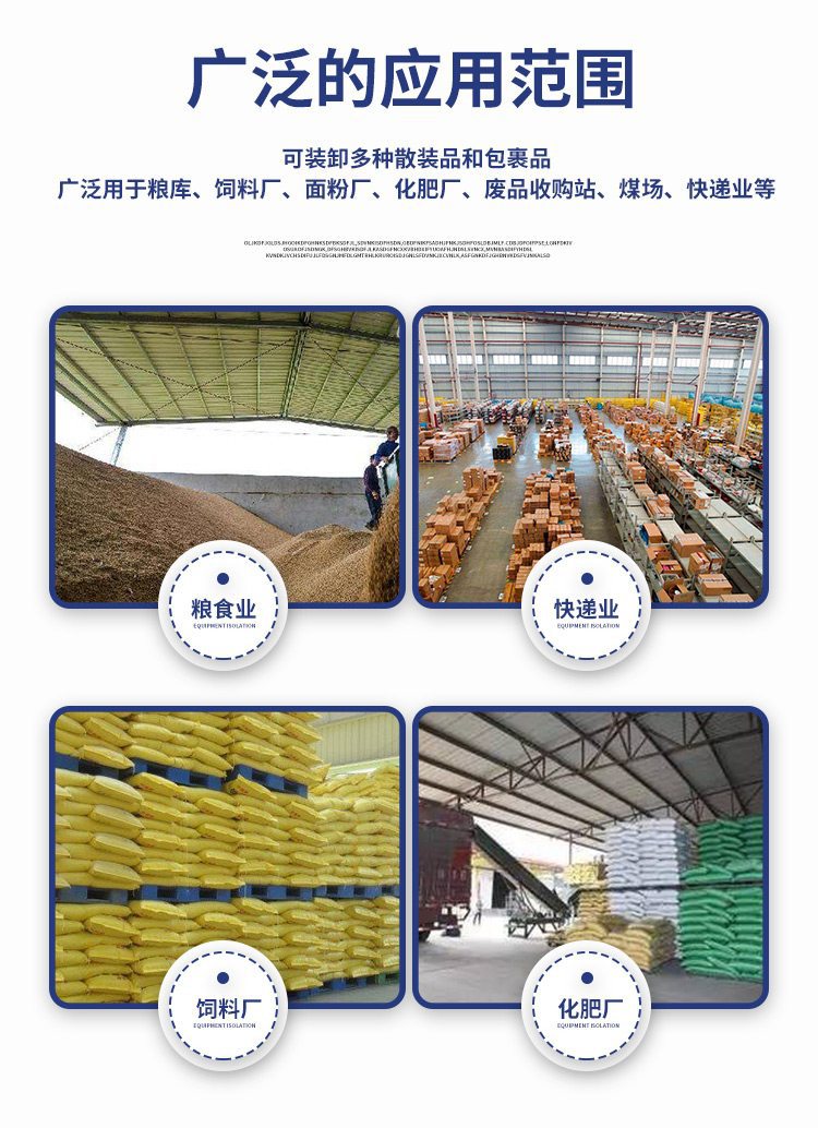 適用分野 穀物、冶金、、、化学工業、石炭、鉱山、港湾、建材、袋、箱....