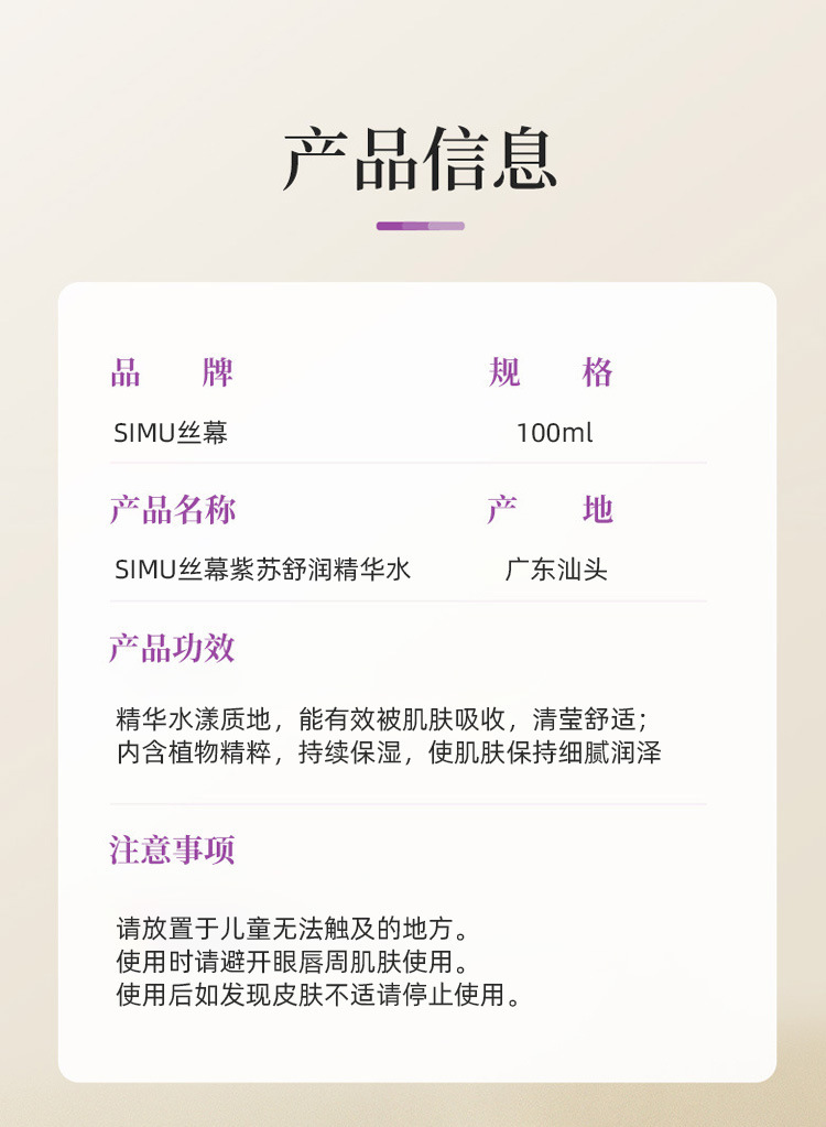 【产品名称】SIMU丝幕紫苏舒润精华水