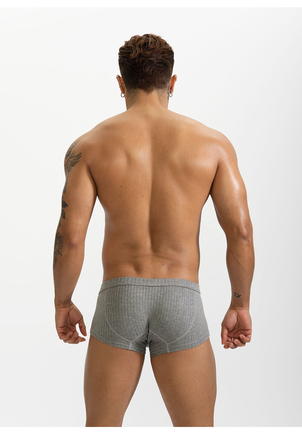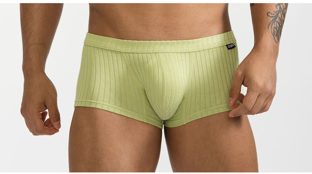 GTOPX男士低腰U凸单层四角裤 纯色条纹舒适透气学生运动平角内裤
