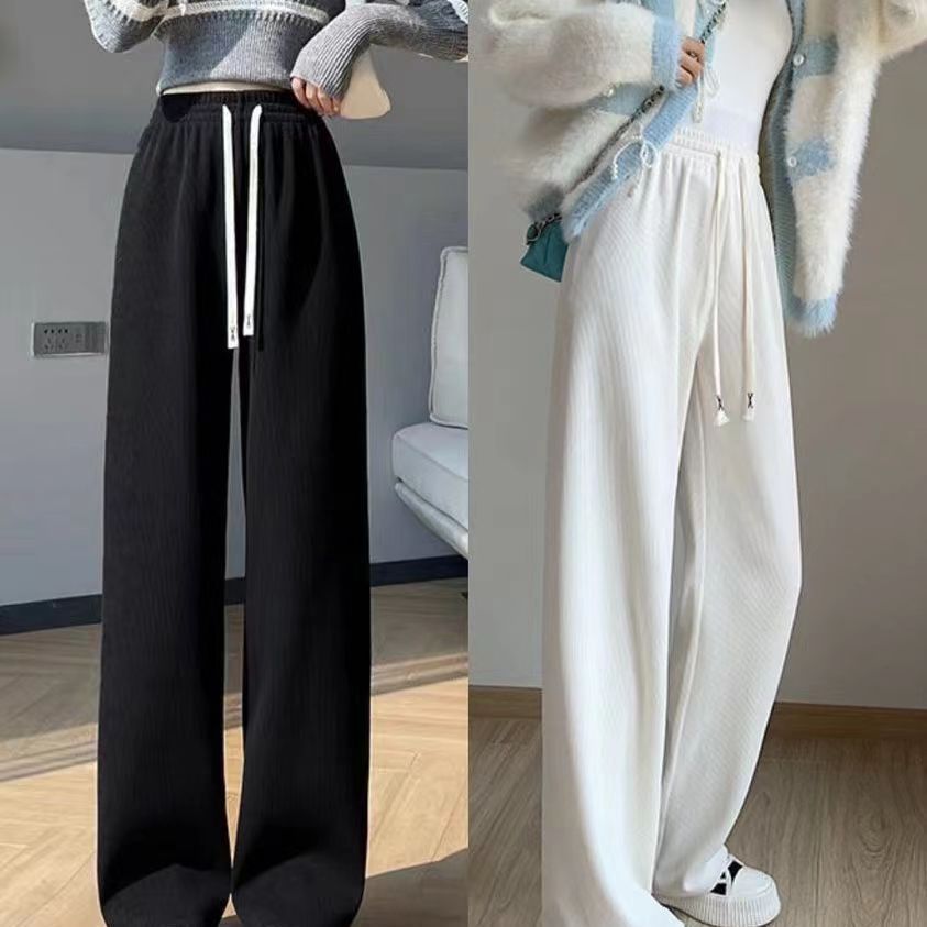 2025新款彩虹糯米裤阔腿裤女秋冬高腰垂感休闲直筒裤加厚毛呢裤