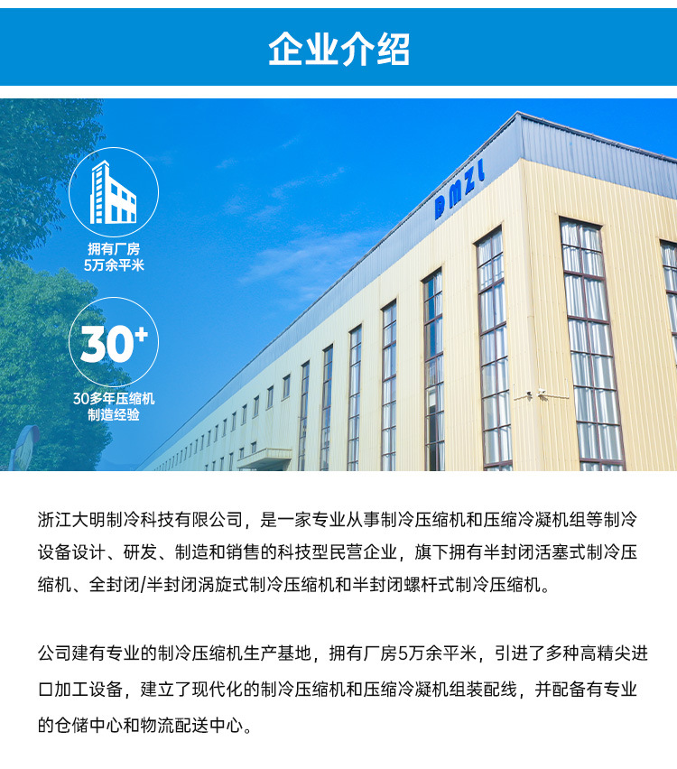 浙江大明半封ピストン開放式7-15p中温冷凍ユニット肉類海鮮冷凍機新
