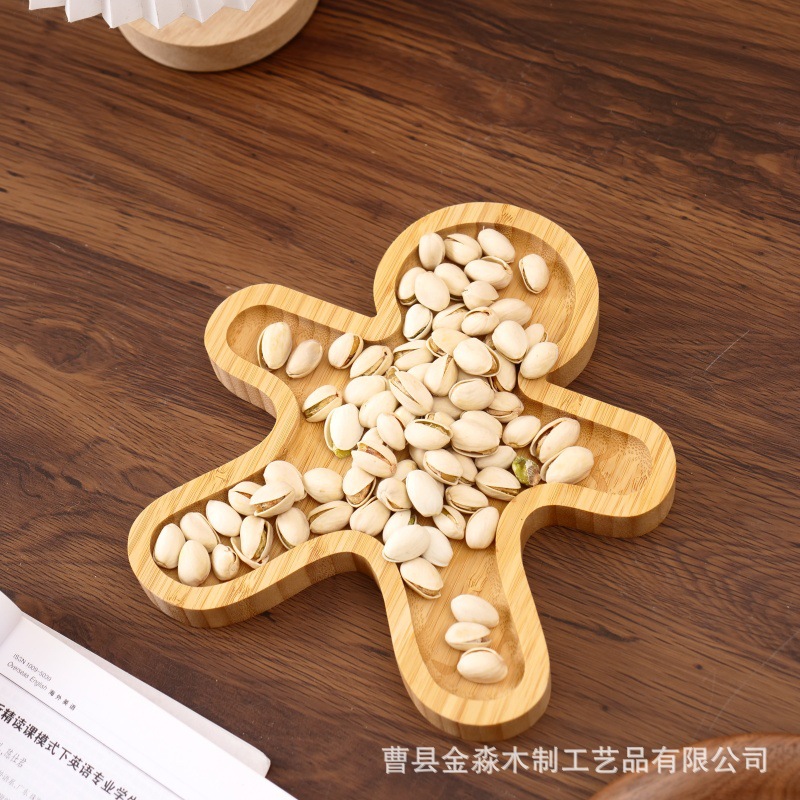 木製ジンジャーブレッドマンドライフルーツスナックプレートパーティーパーティーデスクトップスナック装飾木製プレートクロスボーダー無垢材スナックプレート