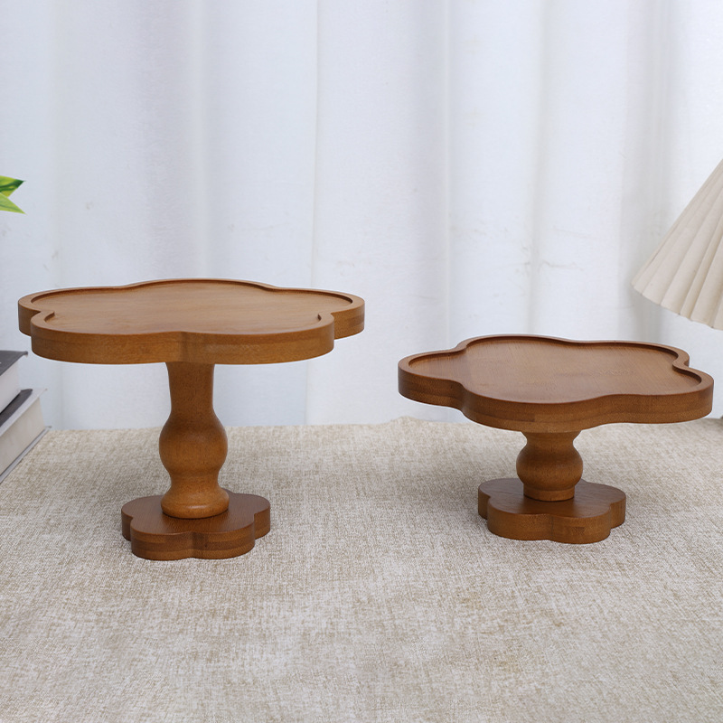 法式复古花边高脚木托盘蜡烛置物香薰托盘木质摆件高脚花边盘
