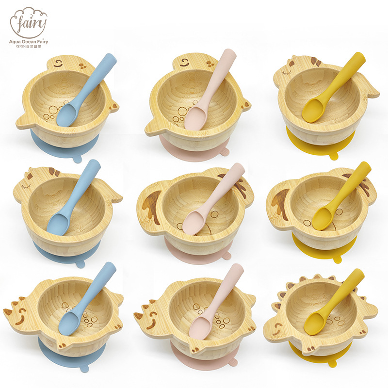 2025クロスボーダーの新型竹の木の碗のコアラの形の竹の碗の子供は食事を学んでスプーンの竹の食器のセットを訓練します。
