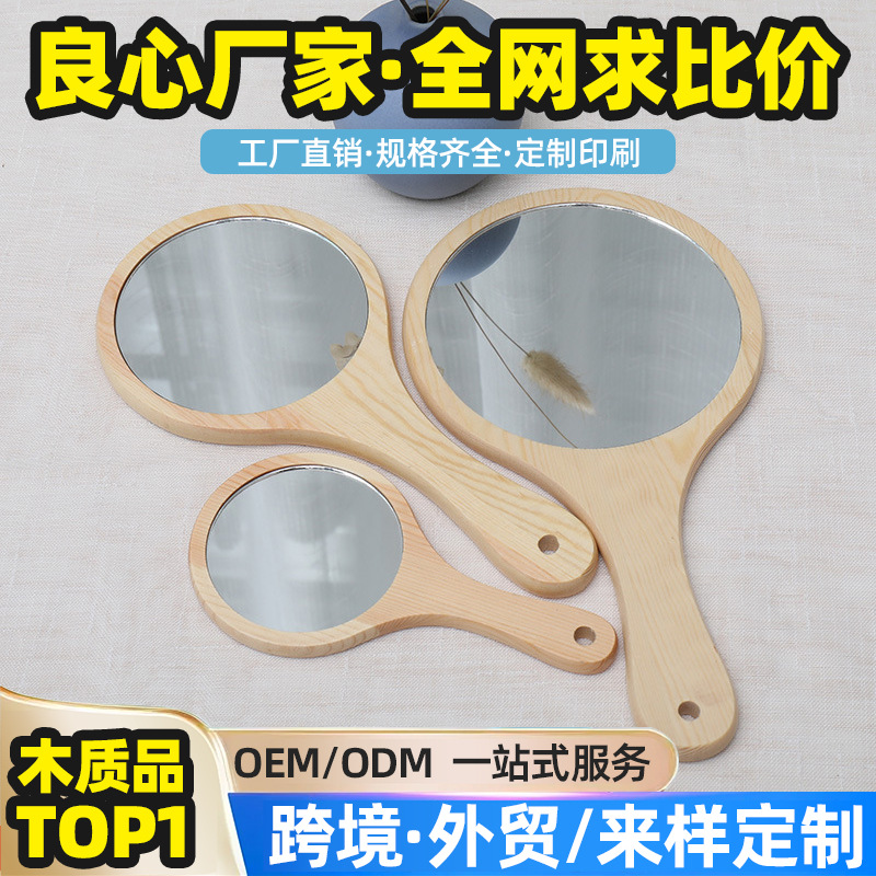 木製化粧鏡、携帯用大型丸型鏡、化粧鏡、銀鏡、特殊形状美容ミニカスタム