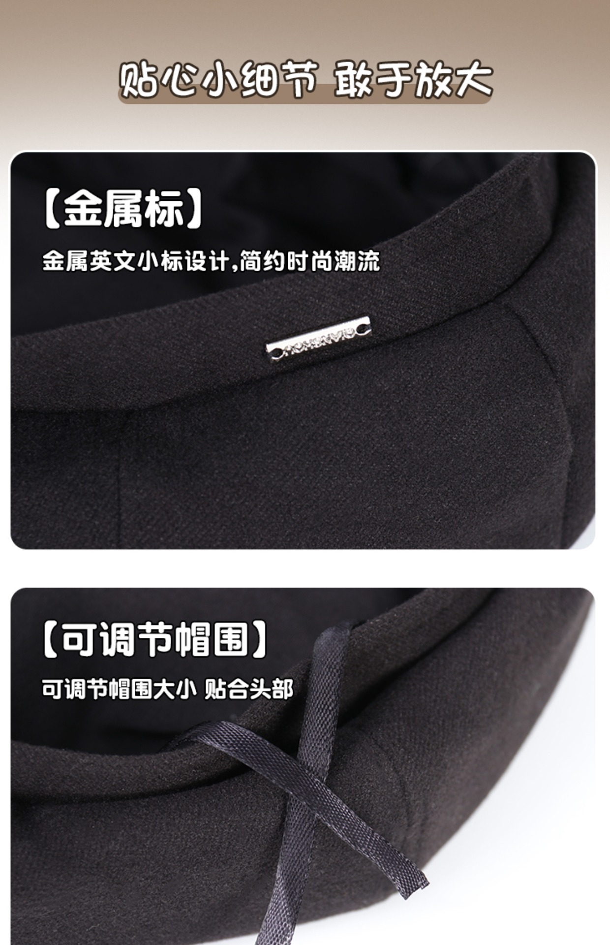 黒いベレーの子供は秋冬に日本の保温毛があります。