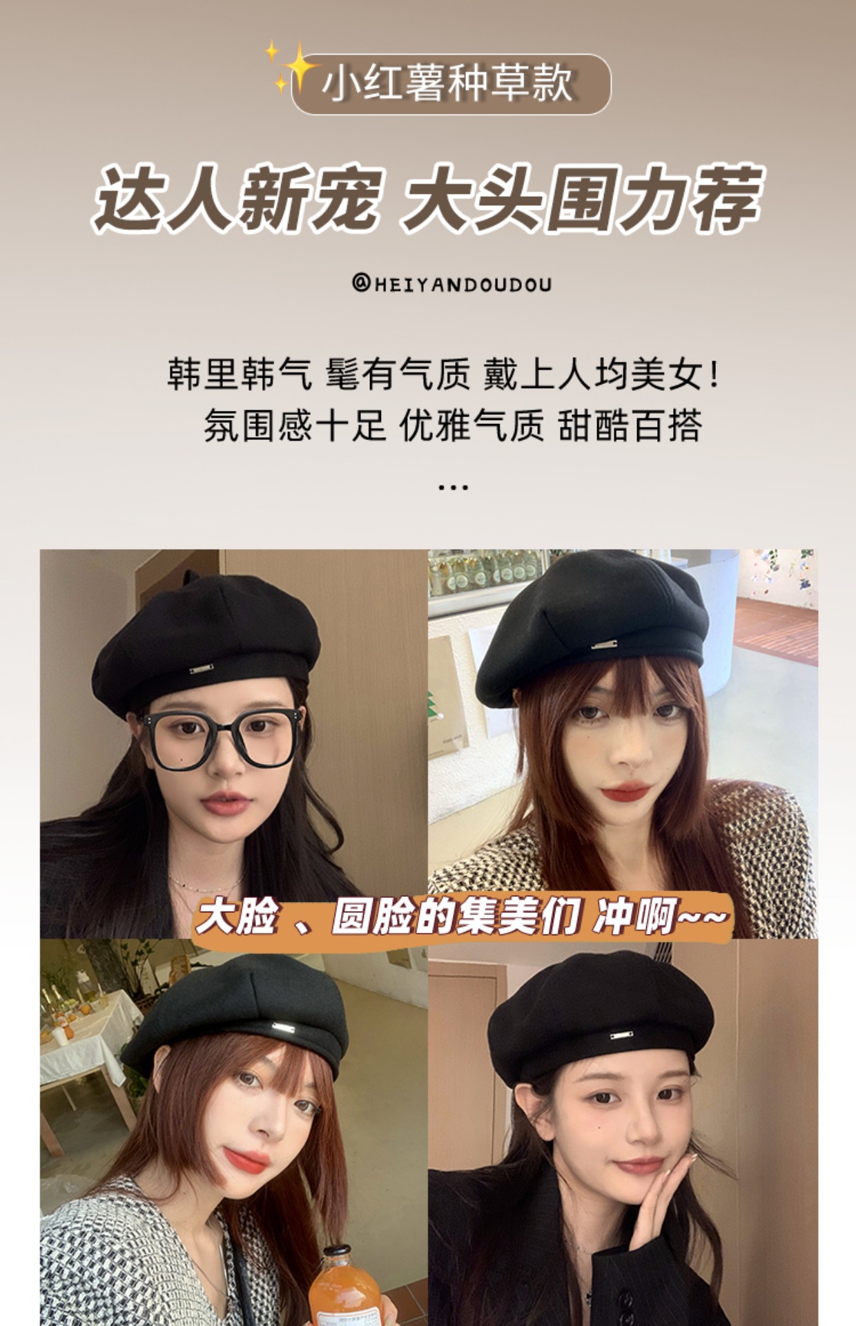 怠惰な風の大きい頭の周りに帽子を積む女性の秋冬のファッションの頭の月の帽子の冷たい帽子は顔の小さい頭の帽子の女性を現します。
