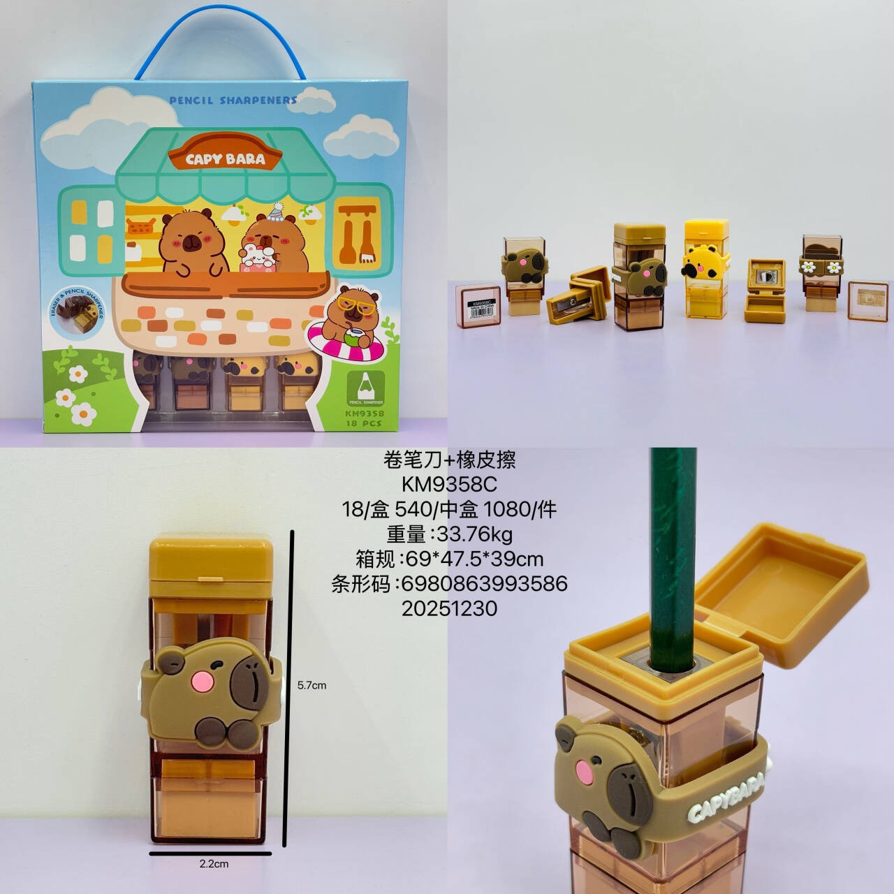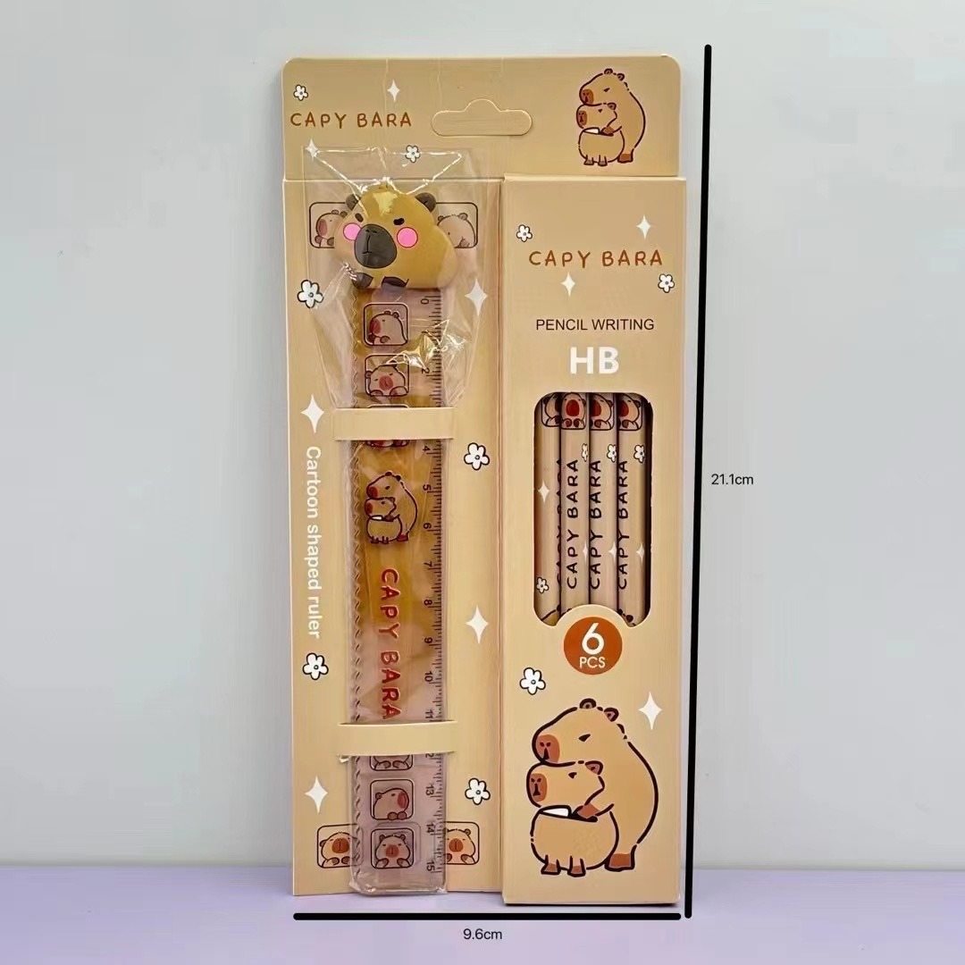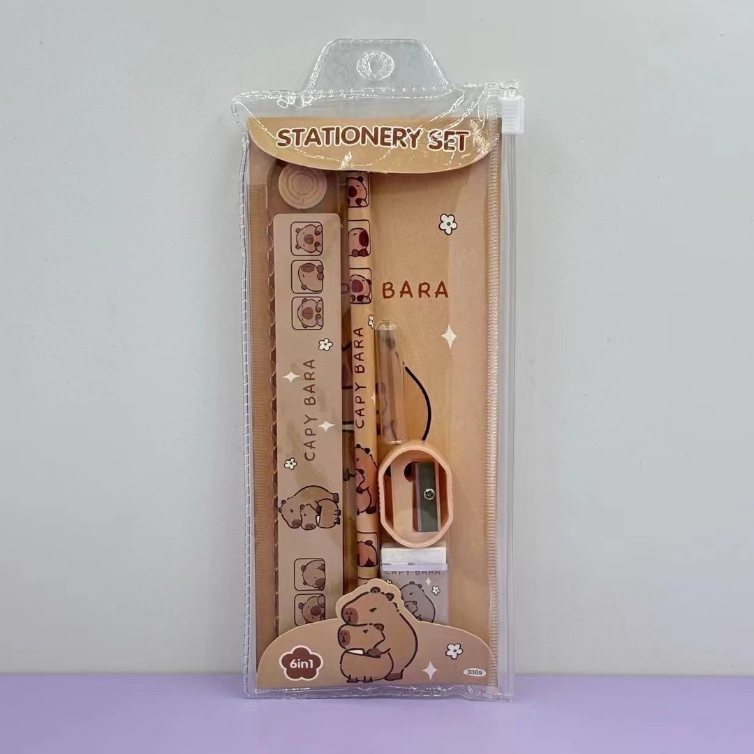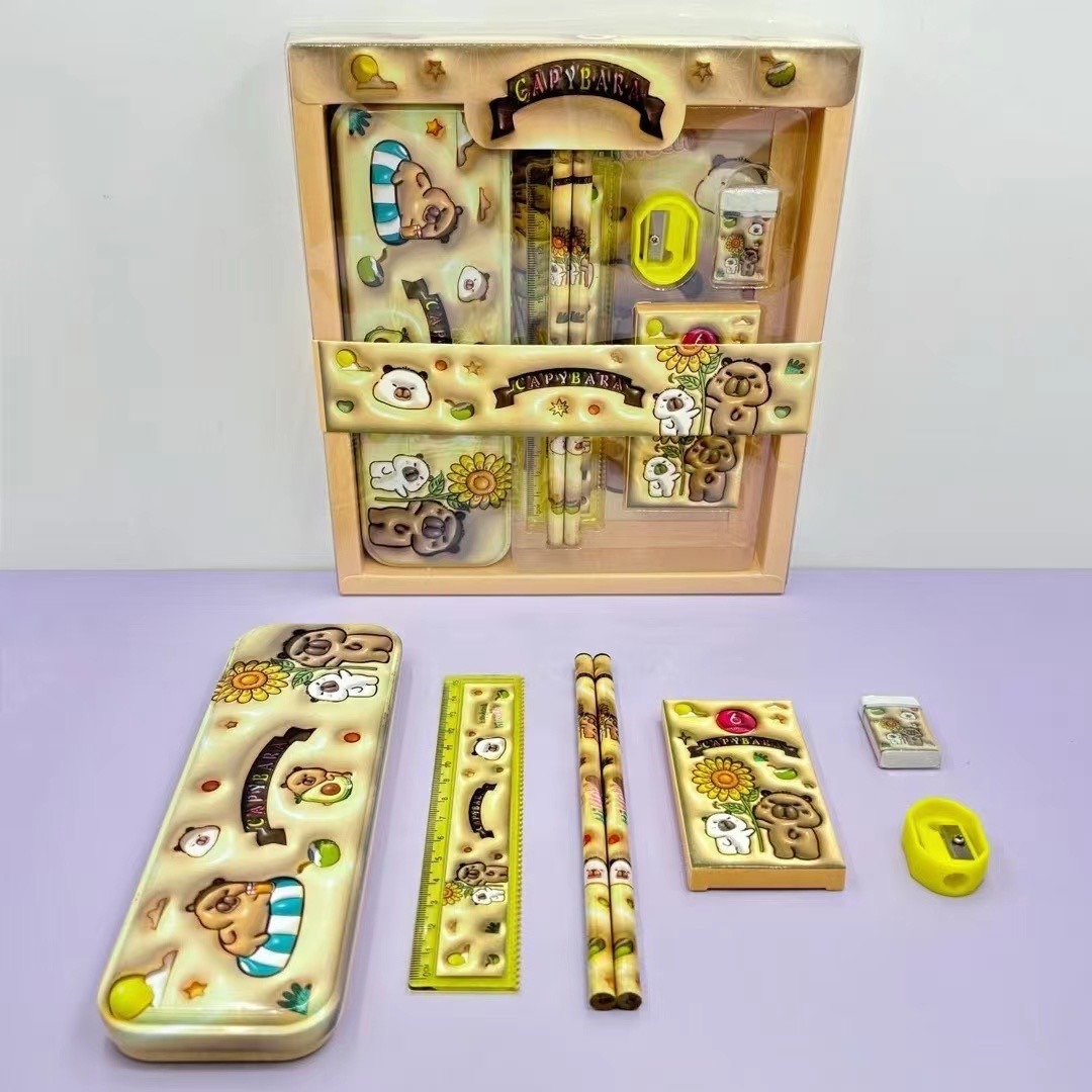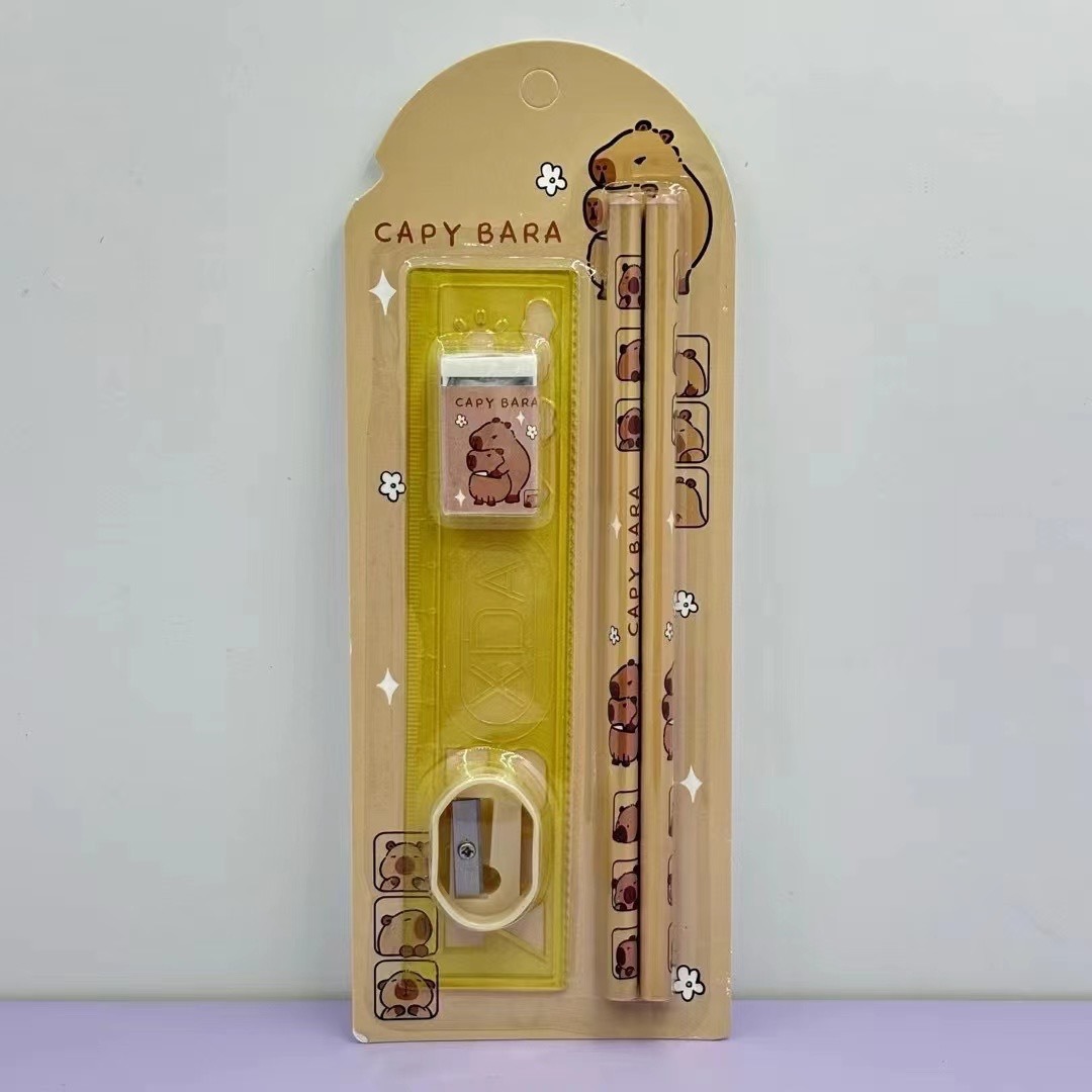 新款卡通可爱创意卡皮巴拉多款全套文具套装铅笔尺子套装用品