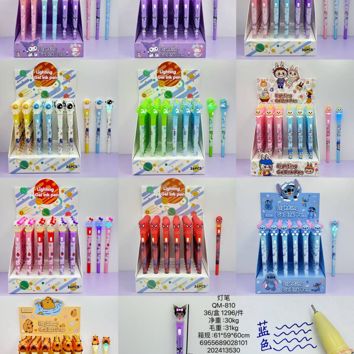 810漫画の頭の新型のかわいいアニメのアイデアの明かりの筆の中性の筆の高い顔の値の学生は水筆を書きます。