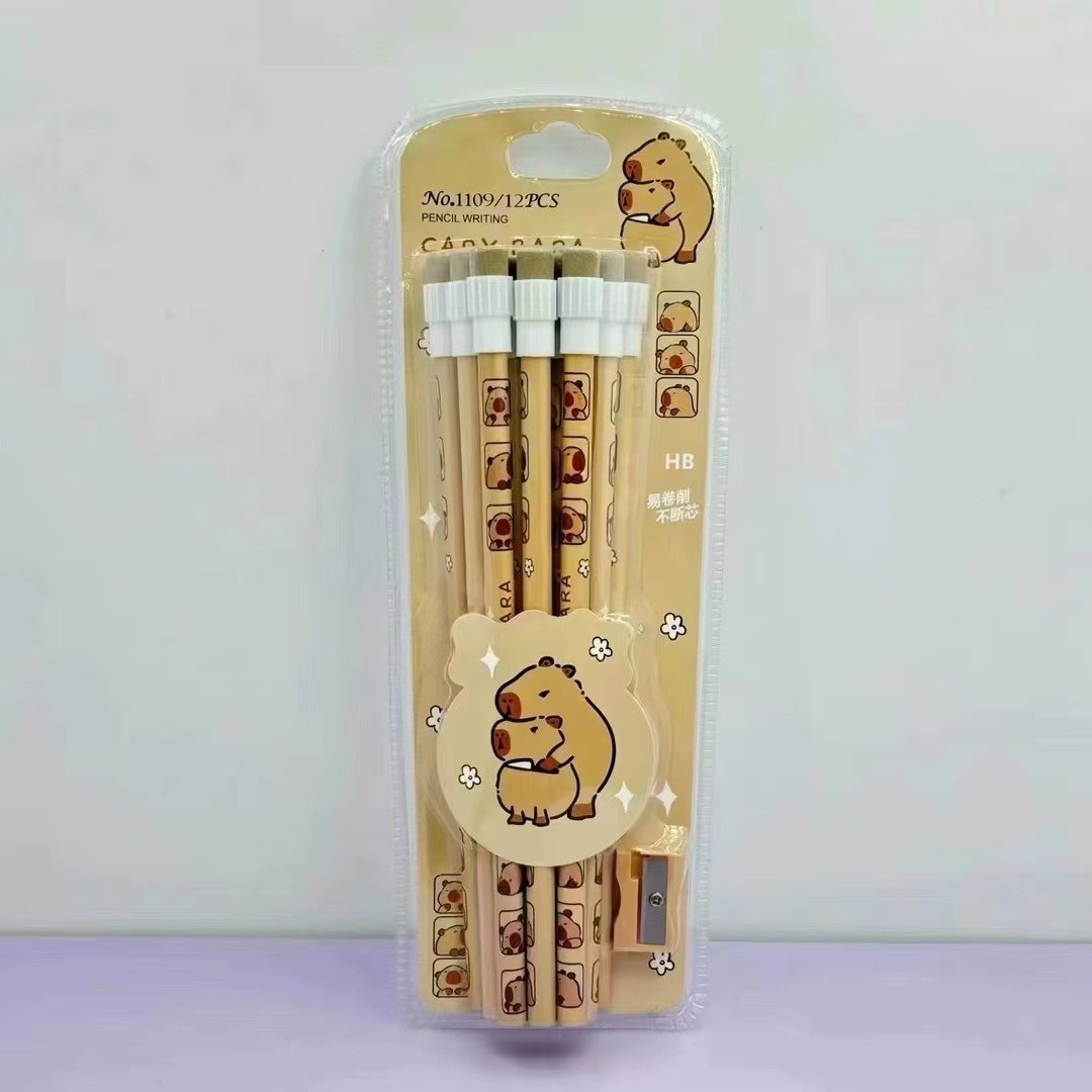 カピバラ文房具セット製品複数種類のライトペンボールペン中性ペン鉛筆セット物差し
