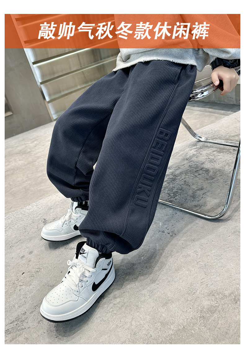 男童秋冬款裤子2025新款大童秋装男孩运动儿童休闲加绒加厚直筒裤
