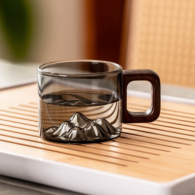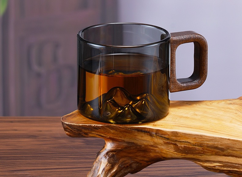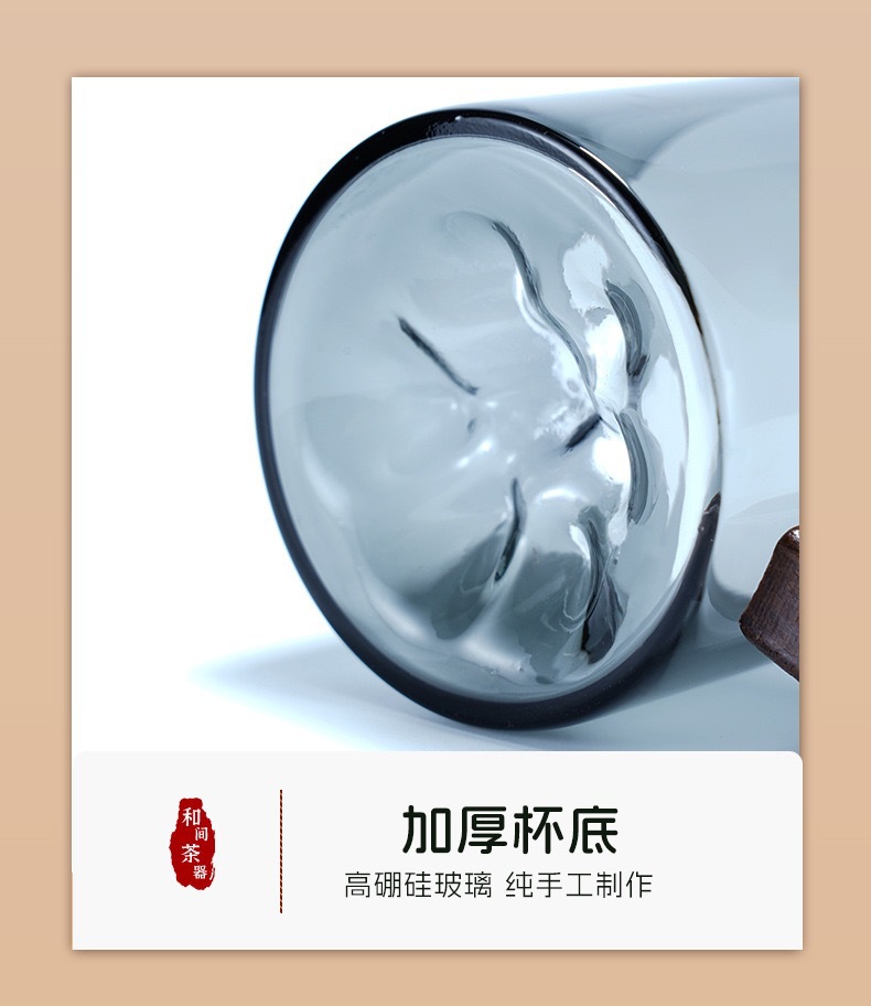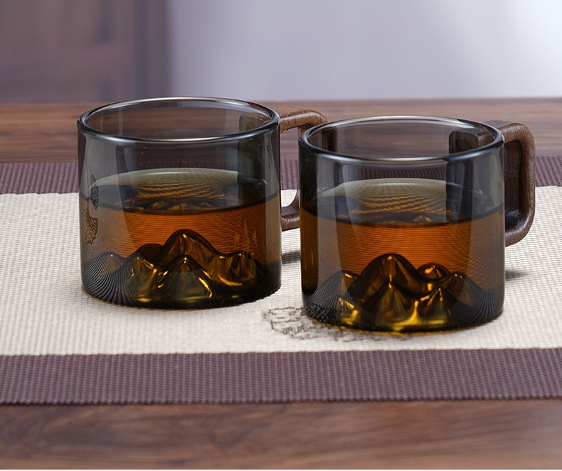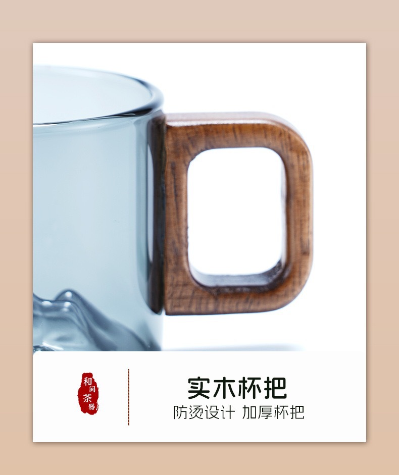 胡桃木把手观山杯品茗杯耐高温简约家用单层杯喝茶杯高硼硅玻璃杯