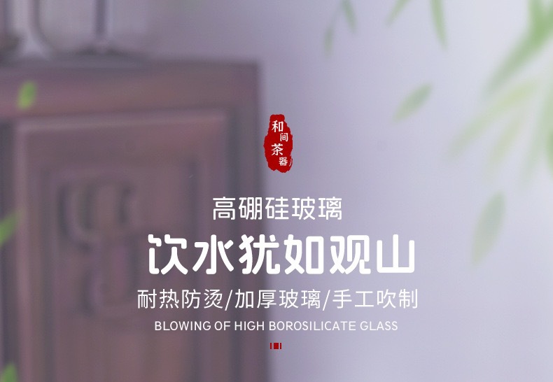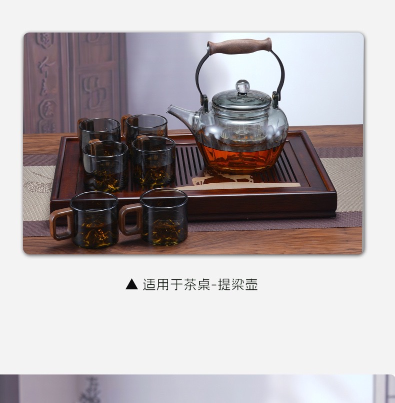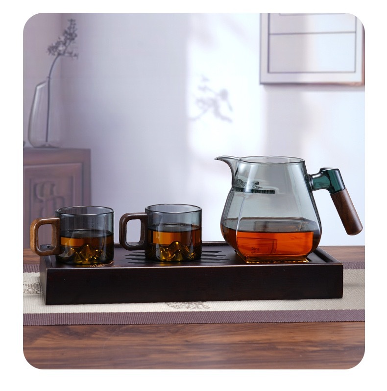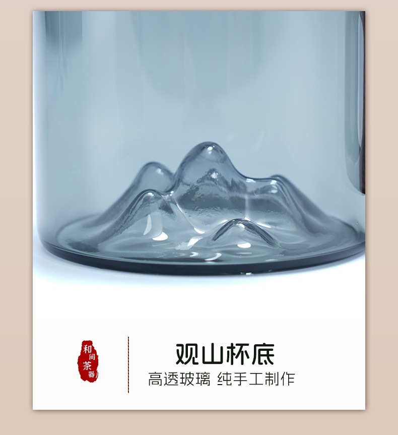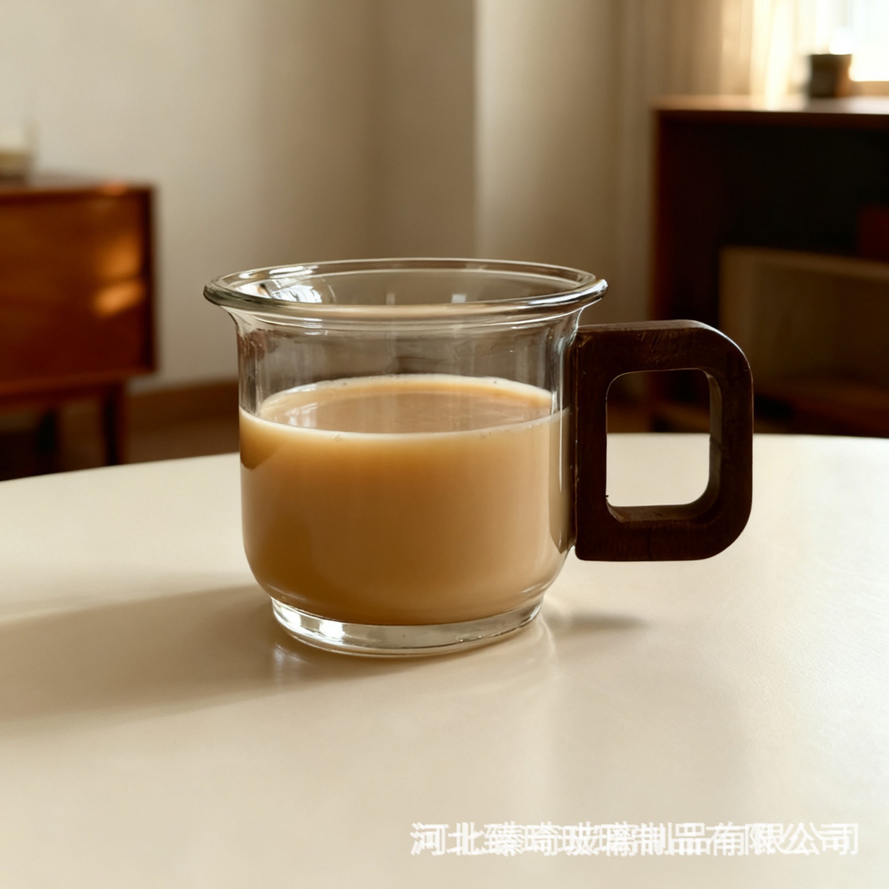 胡桃木把手观山杯品茗杯耐高温简约家用单层杯喝茶杯高硼硅玻璃杯