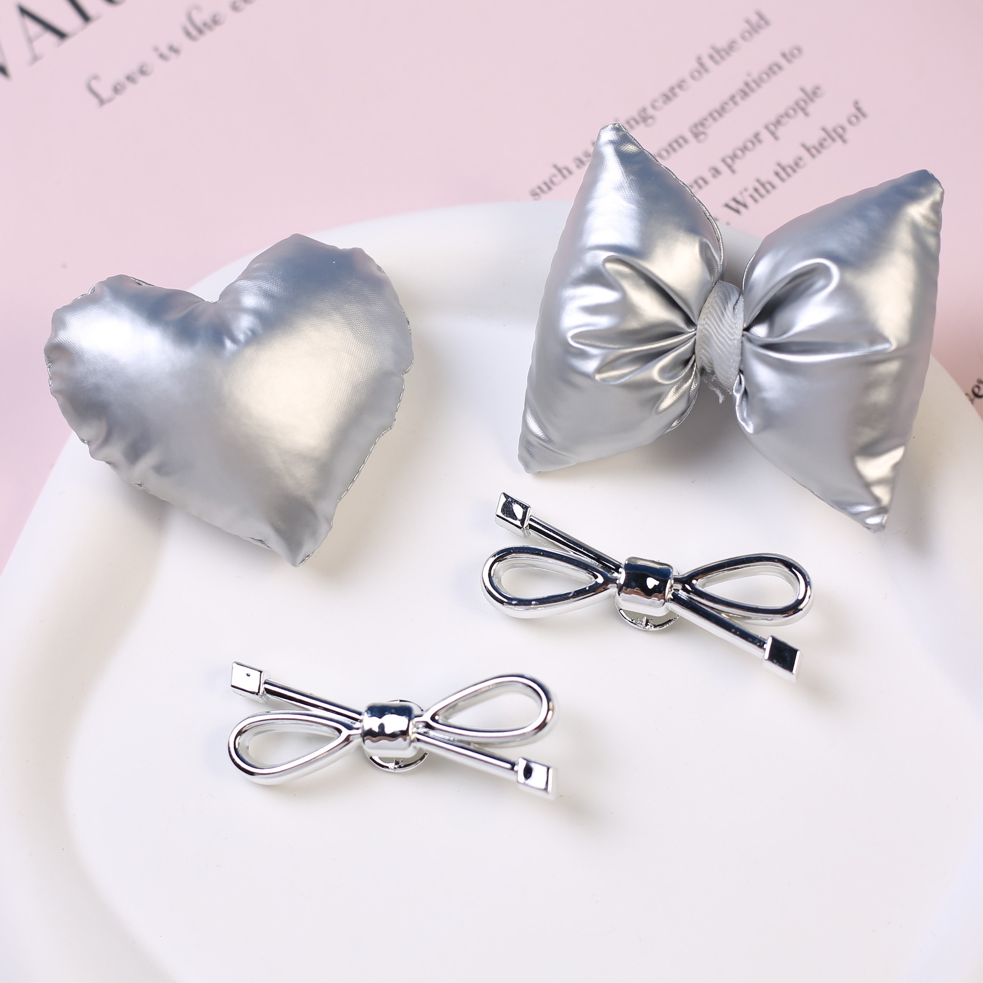新款热销银色蝴蝶结爱心树脂饰品配件 diy洞洞鞋鞋花配件厂家批发