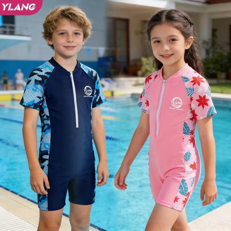 新款儿童泳衣女童男童拉链连体平角中小大童速干游泳训练泳装批发