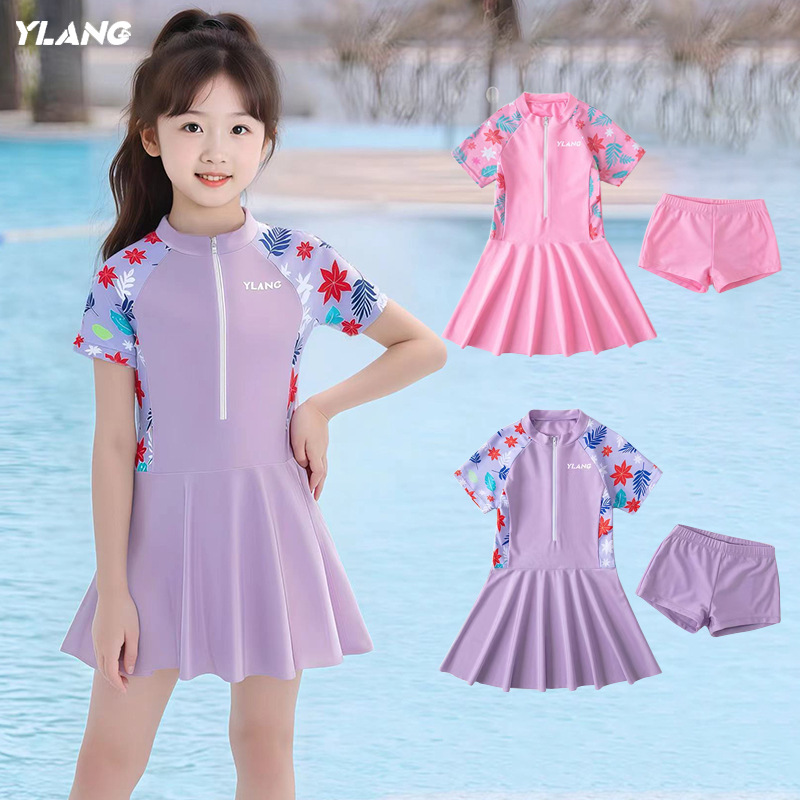 子供の水着の女の子のワンピースの速乾の中で大きい子供の赤ちゃんは体を分けて角のズボンの保守的な女の子の学生の水着を分けます。
