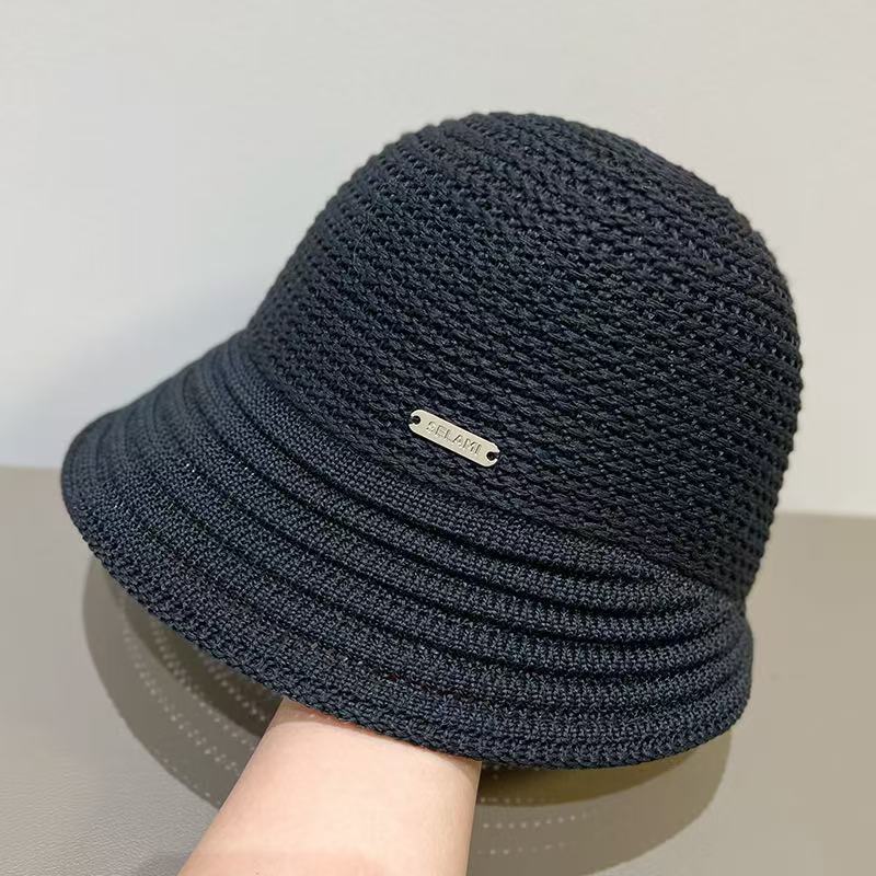 春夏の新スタイルの女性用ニット通気性フィッシャーマンハット、韓国風、シンプルな気質、多用途、顔が見える小さな日よけ帽子、折りたたみ式盆地