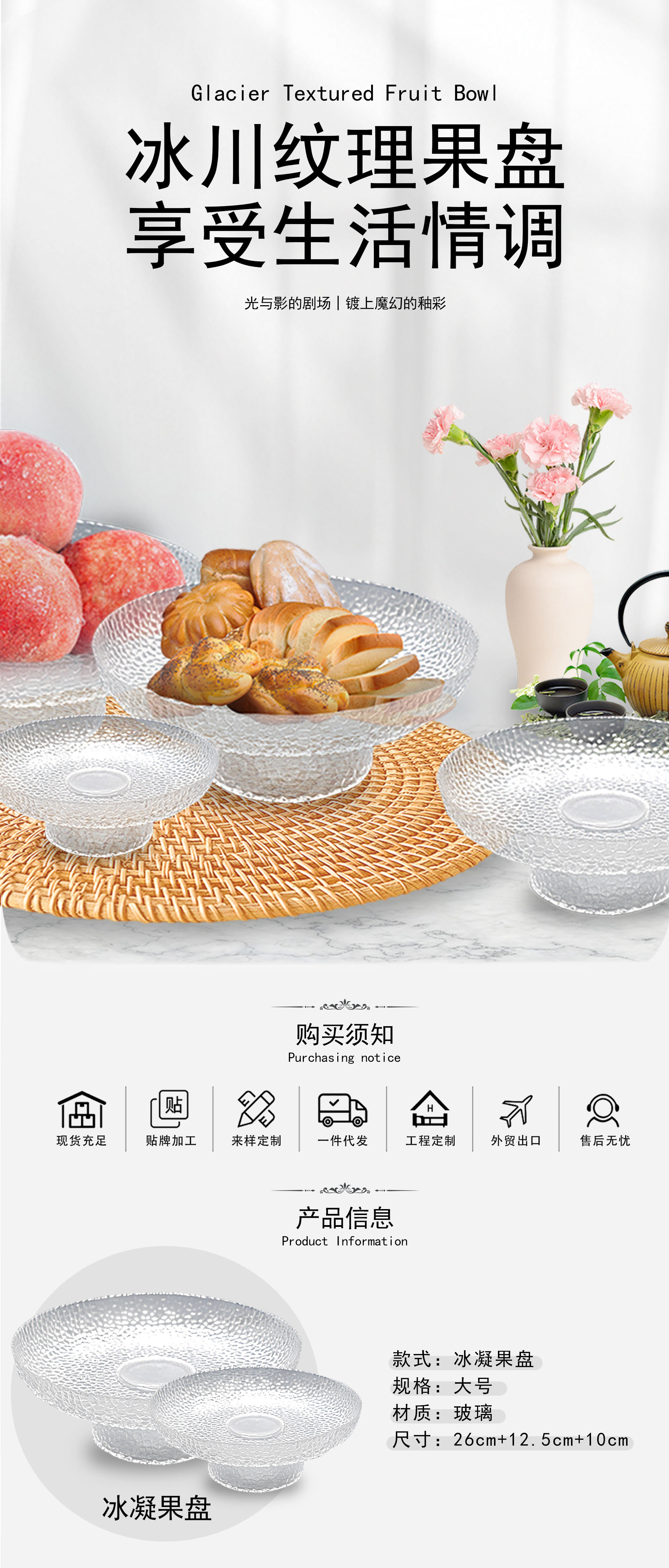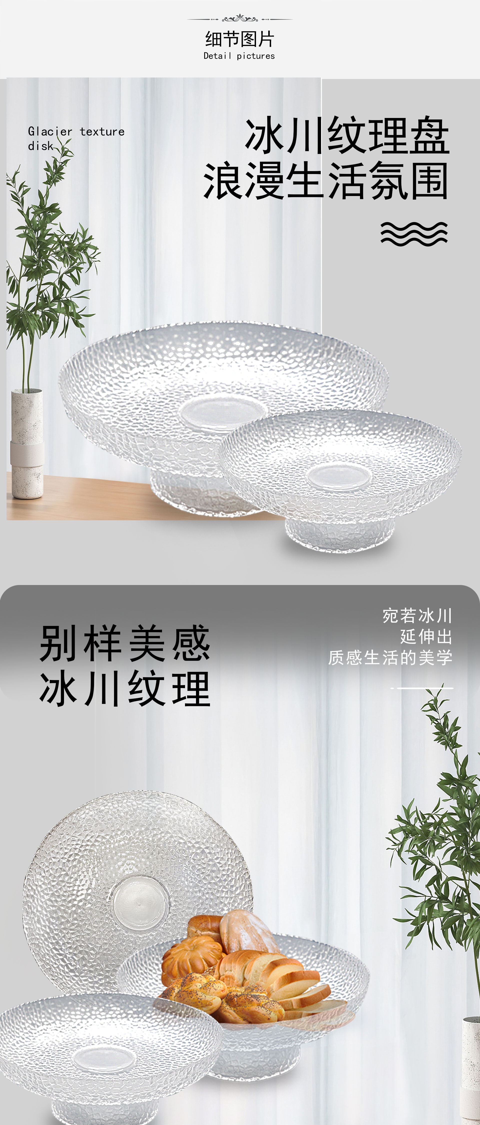 氷露高足果物皿水晶ガラス高颜値ハンマー皿高颜値皿果物皿菓子皿置物