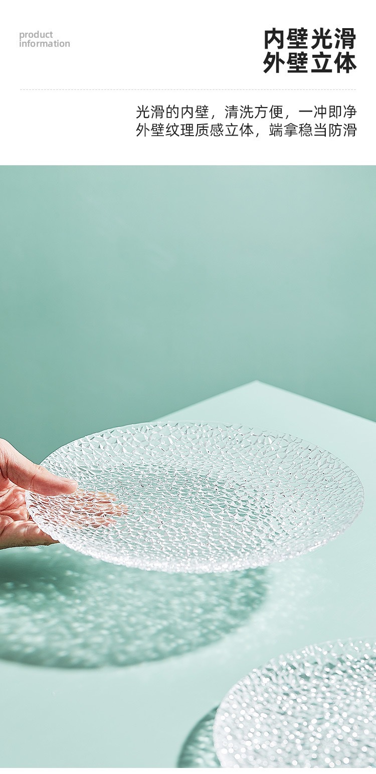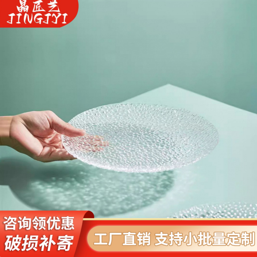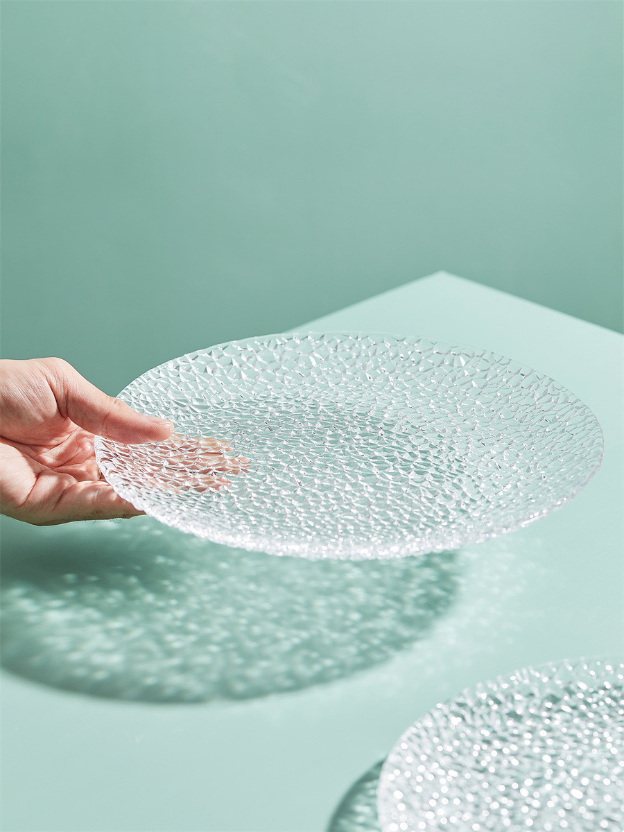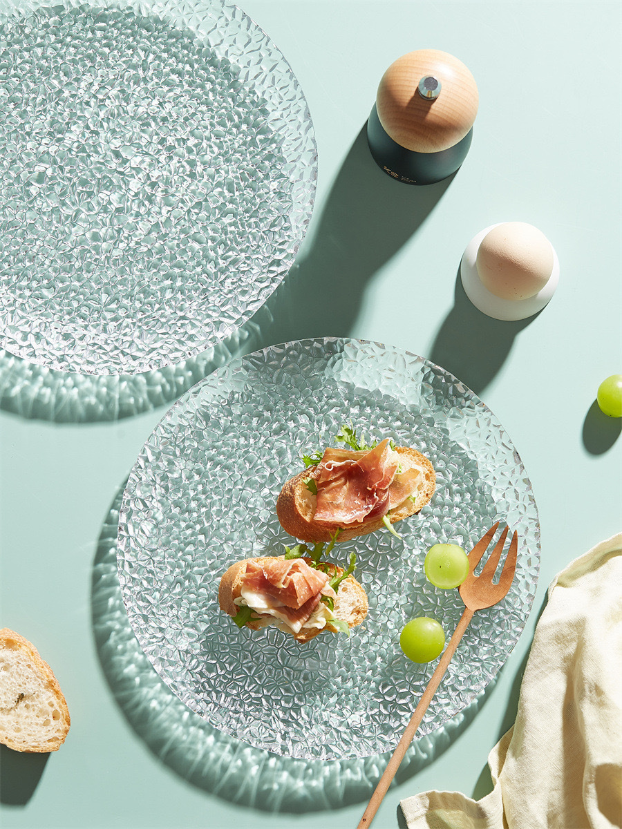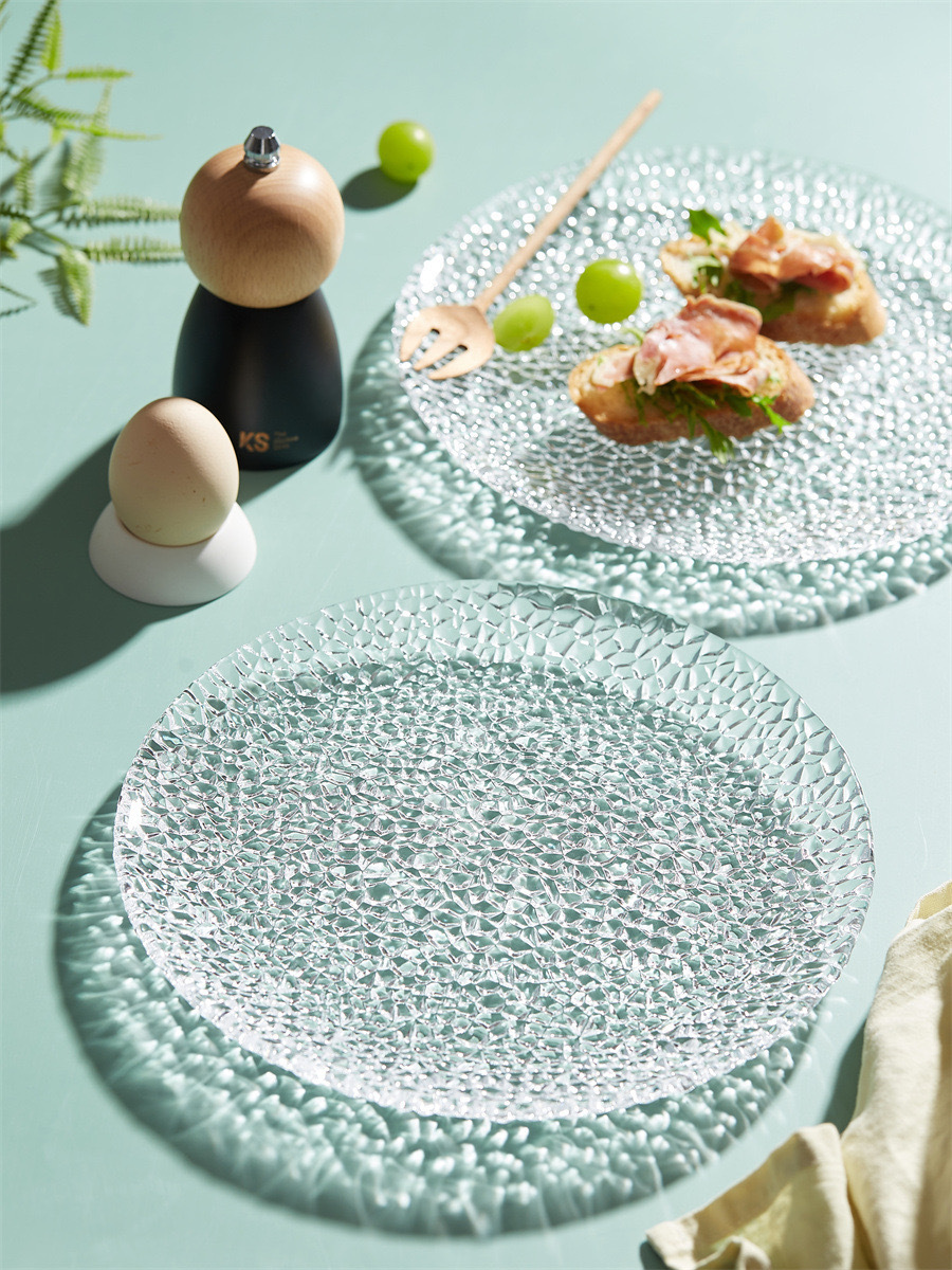 北欧氷凝ガラス皿家庭用ins風料理皿平皿創意フルーツ皿小食皿サラダデザート皿