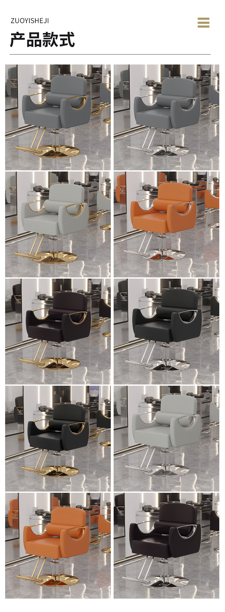 美发椅理发店网红升降旋转轻奢不锈钢可放倒凳子时尚剪发椅理发椅