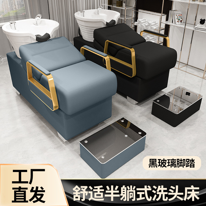 セラミック洗面器付きシャンプーベッド、ヘアサロン用フラッシングベッド、高級理髪ベッド、カスタマイズされた理髪店の半横たわるシャンプーベッド