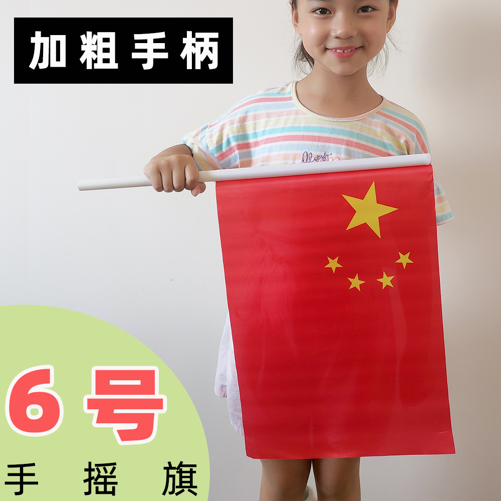 6号手回し旗、ポール付きカラフルな旗、建国記念日旗、幼稚園児用プラスチック太柄五つ星小赤旗