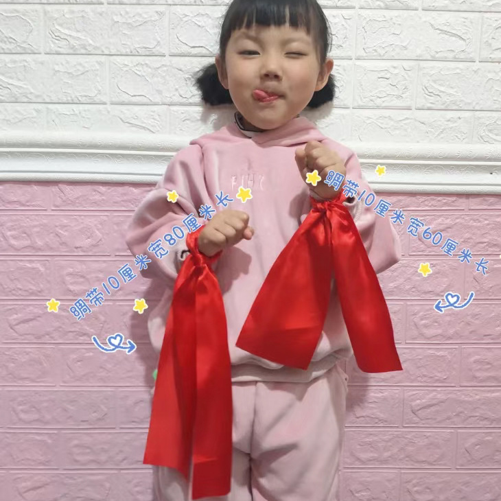 子供の日のヤンコ子供用赤いリボンダンスシルク大きな赤いシルクリボンリボン赤い布腰太鼓ベルトダンス