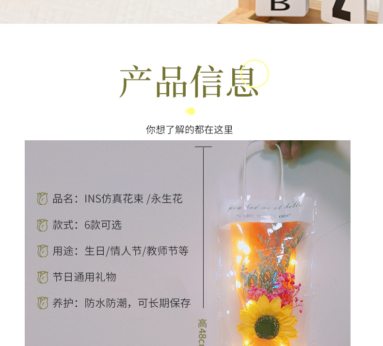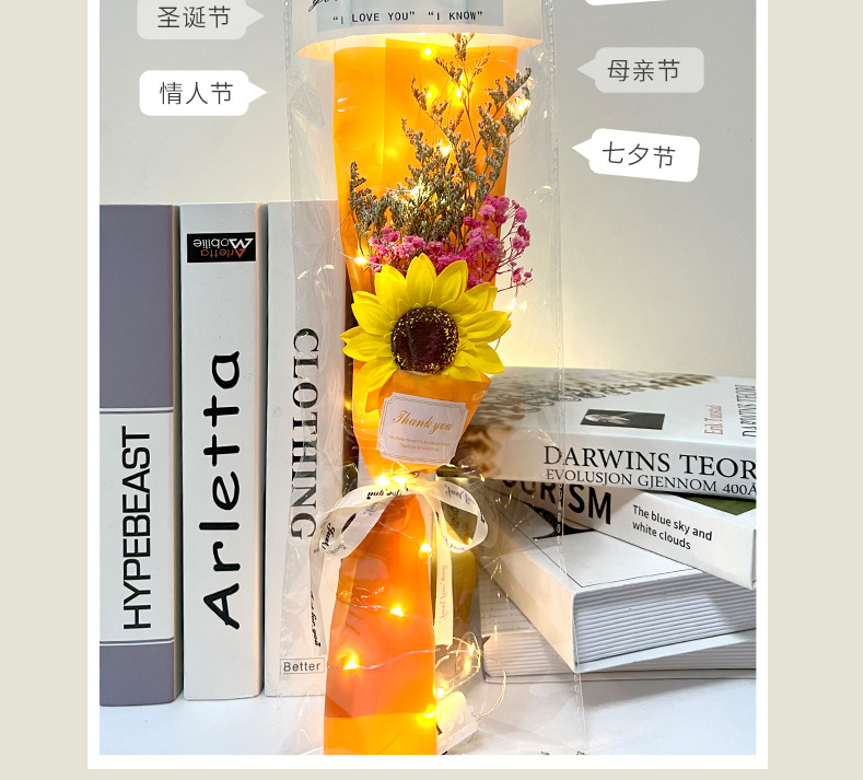 38三八婦人デー女神祭プレゼント彼女の小さな花束バラ永生花卒業生の日ひまわり