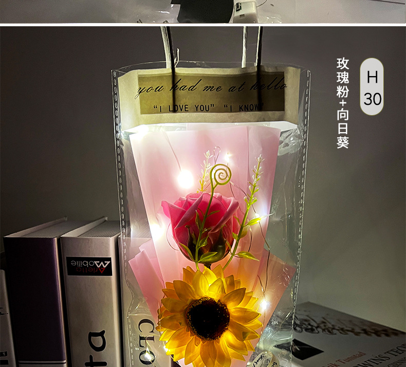 赤いバラと白い赤ちゃんの息 LED ライト ポータブル ギフト バッグ ブーケ,ブルーローズホワイトカスミソウLEDライトポータブルギフトバッグブーケ,ピンクのバラ ピンクの赤ちゃんの息 LED ライト ギフトバッグ ブーケ,ひまわりピンクカスミソウLEDライトギフトバッグブーケ