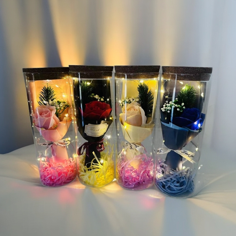 メーカー卸売 跨境販売 単一の花束 透明なバラ バレンタインデー 誕生日の花束 模造LEDライト ビジネス