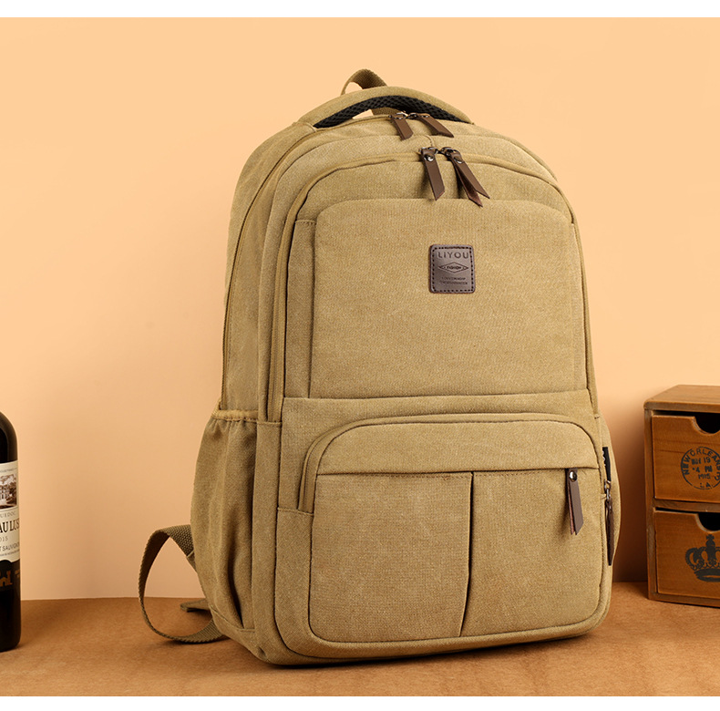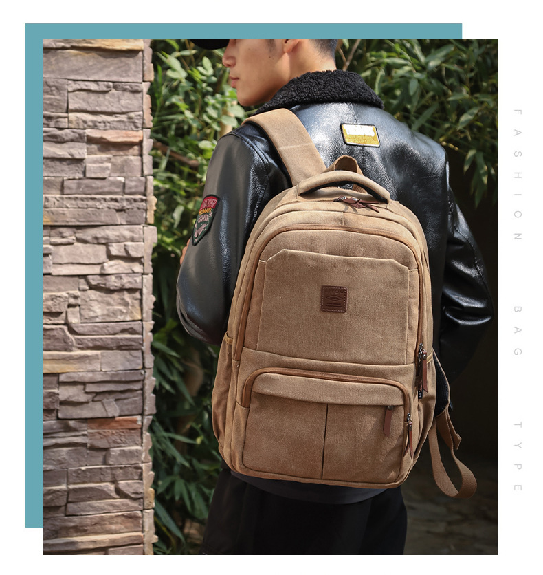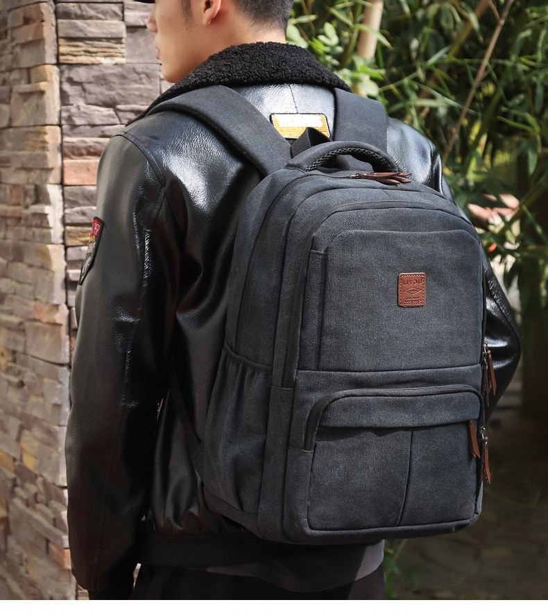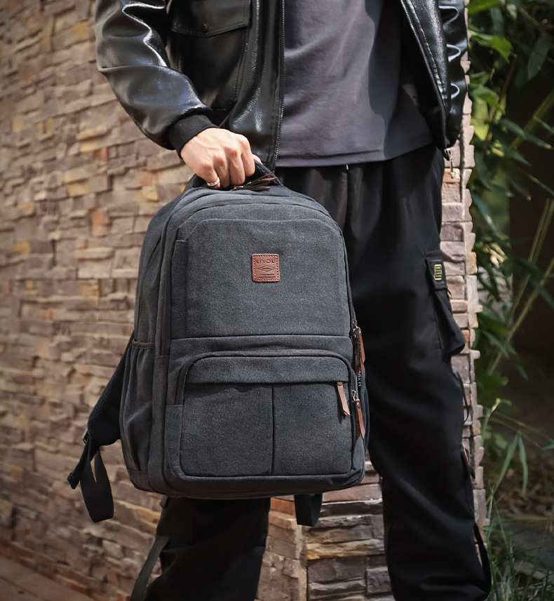 キャンバスバックパック屋外大容量防水旅行メンズスクールバッグニッチデザインバックパックトラベルバッグコンピュータバッグ