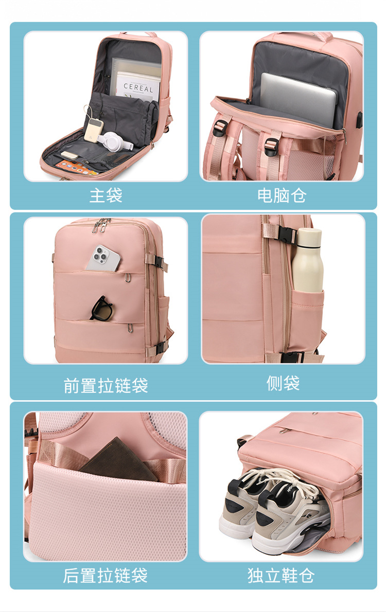 跨境大容量休闲双肩包出差旅行背包干湿分离独立鞋仓扩容电脑背包