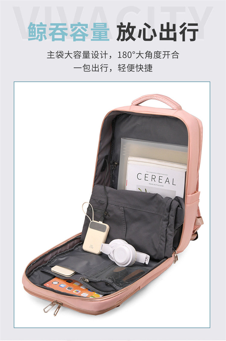 跨境多功能双肩书包新款简约纯色大容量商务电脑包出差通勤旅行包