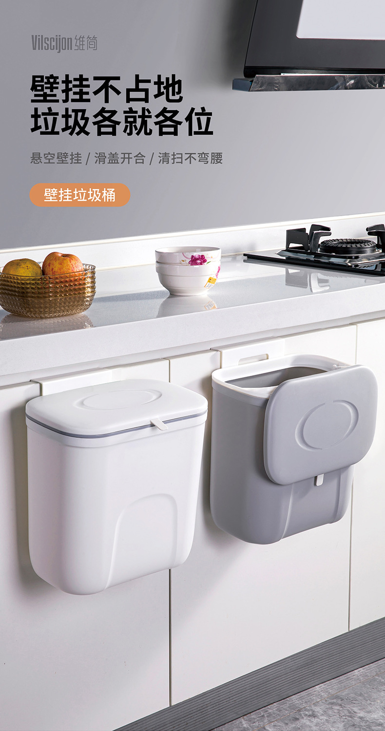 維簡厨房ゴミ箱壁掛け式紙かご厨房余収納桶家庭用挟み客間蓋付きトイレ