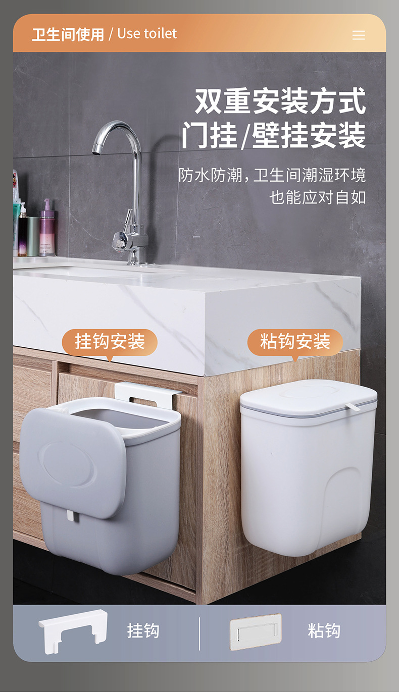 壁掛け式ゴミ箱、隙間収納、家庭用吊り下げ式、キッチン、寝室、トイレ、蓋付き/蓋なし、衛生ゴミ箱